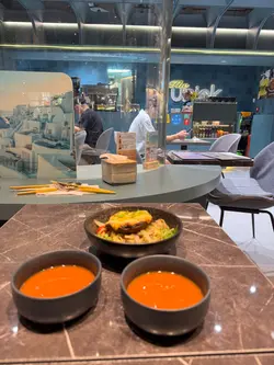 平时都会去吓纱厂,虽然自己冇养小动物,但见到咁多狗狗优哉游哉咁喺商场闲逛会好治愈。平日通常去两、三间爱店,今日试新店,原来都出色有惊喜。1. 黑松露餐汤🥣首先系黑松露餐汤好香,稍稍搅拌下,已经闻到黑松露嘅香味。入口有少少蘑菇粒,劲好饮。店员话餐汤会不时转款,好想试埋佢哋其他汤。😆2. 草莓咖啡🍓估唔到咖啡同士多啤梨奶都几夹,而且唔算甜,几清新舒服。3. 焙茶Latte焙茶超浓郁,劲好饮!焙茶粉成本高,通常啲舖头冇落重手,所以自己只会饮返Cappuccino。估唔到呢间焙茶latte咁正,我会为咗佢再嚟。😎4. 软壳蟹明太子汁忌廉天使面🍝软壳蟹酥脆,而且份量几多,有惊喜。😎天使面软硬适中,配埋忌廉汁滑溜爽口。5. 蕃茄冬阴公海鲜烩意大利饭呢款大推!首先系冬阴功忌廉汁底较少餐厅提供,有新鲜感。其次系蕃茄中和咗少少辣味,但又有香茅嘅清香,几唔错。第三系mix risotto,啲饭索晒啲汁,正!最后系海鲜都多,有青口、蚬、明太子、鱿鱼粒,平日lunch唔使$100,性价比高。😊#南丰纱厂 #南丰纱厂美食推介 #南丰纱厂西餐#uniek #荃湾美食 #荃湾美食推介 #荃湾 #宠物友善餐厅…查看更多