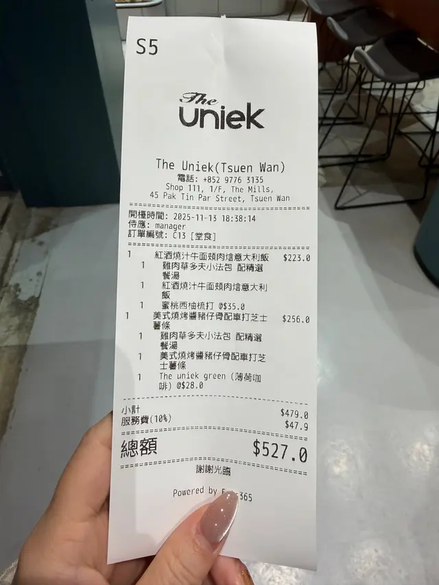 The uniek (荃湾) 网址: https://s.openrice.com/QrLS0dby5W0 地址: 香港荃灣白田壩街45號南豐紗廠1樓111號舖 电话: +852 97763135