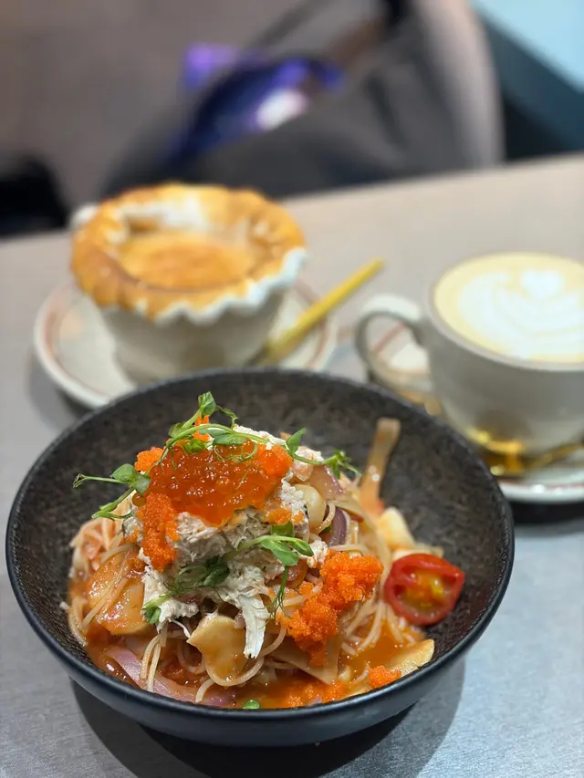 平時都會去吓紗廠,雖然自己冇養小動物,但見到咁多狗狗優哉游哉咁喺商場閑逛會好治癒。平日通常去兩、三間愛店,今日試新店,原來都出色有驚喜。1. 黑松露餐湯🥣首先係黑松露餐湯好香,稍稍攪拌下,已經聞到黑松露嘅香味。入口有少少蘑菇粒,勁好飲。店員話餐湯會不時轉款,好想試埋佢哋其他湯。😆2. 草莓咖啡🍓估唔到咖啡同士多啤梨奶都幾夾,而且唔算甜,幾清新舒服。3. 焙茶Latte焙茶超濃郁,勁好飲!焙茶粉成本高,通常啲舖頭冇落重手,所以自己只會飲返Cappuccino。估唔到呢間焙茶latte咁正,我會為咗佢再嚟。😎4. 軟殼蟹明太子汁忌廉天使面🍝軟殼蟹酥脆,而且份量幾多,有驚喜。😎天使面軟硬適中,配埋忌廉汁滑溜爽口。5. 蕃茄冬陰公海鮮燴意大利飯呢款大推!首先係冬陰功忌廉汁底較少餐廳提供,有新鮮感。其次係蕃茄中和咗少少辣味,但又有香茅嘅清香,幾唔錯。第三係mix risotto,啲飯索晒啲汁,正!最後係海鮮都多,有青口、蜆、明太子、魷魚粒,平日lunch唔使$100,性價比高。😊#南豐紗廠 #南豐紗廠美食推介 #南豐紗廠西餐#uniek #荃灣美食 #荃灣美食推介 #荃灣 #寵物友善餐廳…查看更多
