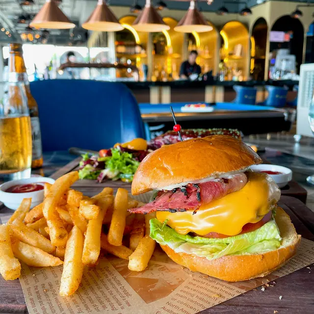 .無意中發現優惠🥹🤫 @upperdeckhk 住係東涌嘅原因,東涌每一間餐廳我地都食過曬!!放假就行遠小小,Tbay近東涌Sheraton Hotel,東涌市中心行過去路程大概15-20分鐘💁🏻♀️亦可以乘搭 @sheratonhongkongtungchung Sheraton Hotel嘅shuttle bus🚌🚏30min一班車來往東涌站及酒店🏨..今次想介紹優惠嘅餐廳就係Upper Deck💁🏻♀️今次過去食晚餐,又轉左menu,而且任何消費均有7折優惠😲..對住海景、機場食晚餐,我地兩個人叫左2個主菜,1杯飲品,食飽飽仲玩左一場桌球🎱先返屋企😝,人均只係$182💁🏻♀️..雞肉漢堡🍔($125)因為係美式風格,份量都好大,漢堡本來已經好厚身,脆雞肉係用左上雞腿肉,所以好嫩滑多汁,漢堡醬汁用了墨西哥辣汁,特別惹味🌶️..燒春雞 (半隻)($138)春雞用了辣粉調味,燒得特別香脆,但仍保持春雞嘅香嫩,配有薯泥,薯泥好香牛油香,同時亦帶有奶香🤤..當晚嘅氣氛唔錯,有情調,而且有不少外國人飲野、督波,更有客人慶祝生日,餐廳會播放生日歌同時為客人送上蛋糕🎂咁嘅環境仲要對住海景,我就覺得物超所值。趁仲有優惠,快d去試試😏🎁..地址:The Upper Deck (東涌) 東涌怡東路9號灣景薈1樓101號舖..#upperdeck #bar #grill #birthday #seaview #seaviewbar #restaurant #hongkongbar #tungchung #citygate #citygateoutlets #sheraton #sheratonhotel #marriott #hotel #staycation #東涌美食 #灣景薈 #海景餐廳 #扒房 #foodshare #hongkongsteakhouse #steakhouse #burger #fries #桌球 #桌球餐廳 #酒吧 #goodvibes #優惠…查看更多