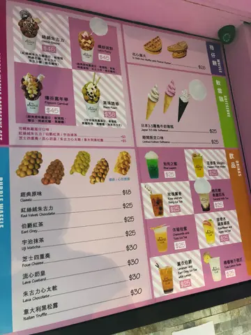 今晚约左朋友食饭 但朋友迟到 ,咁就系附近行下 见到呢间门面好吸引 ,见到d鸡蛋仔好吸引 见朋友又未到 又肚饿 就买个鸡蛋仔试一试 ,有好多种口味可以拣 今次就拣了奶黄味 。惊喜地好食 奶黄味好香 但唔太甜 即叫即整 热辣辣咁食 正👍🏻👍🏻
