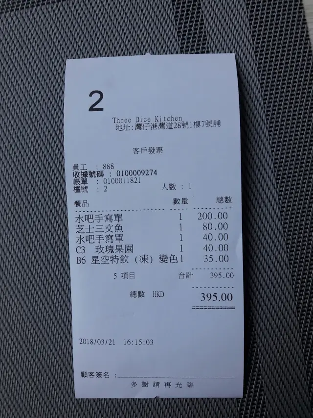 Three Dice Kitchen (湾仔) 网址: https://s.openrice.com/QrLS0gZ0800 地址: 香港灣仔港灣道28號灣景中心 (Brim 28)1樓7號舖 电话: +852 22051108