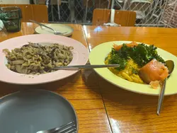 有唔同朋友提过想嚟食嘢,最后拣咗其他cafe,终于揾到一个平日嚟午餐。Openrice上唔见set lunch的餐牌,但餐厅喺1130-1730供应午餐。可能观塘区饮食业竞争大,呢间主题cafe的食客聊聊可数。近窗的用餐区摆放中学生台椅,近墙果边就有几套复古木制餐台椅。我同朋友点咗1份午餐+饮品+甜品,单点1客意粉+(跟主菜半价)饮品。牛油果香芒凯撒沙律:午餐,$72;话系凯撒沙律,其实似鲜果沙律,菜底少,系沙律菜而唔系罗马生菜;沙律以杂果为主,有芒果、火龙果、菠萝同橙;生果新鲜,但切细件而大小参差、橙系一瓣,核较多;牛油果半个;仲有未经烘焗的腰果,腍咗但较健康;以由cafe供应的沙律嚟讲,已经唔错,量多足料,颜色丰富,可以收货!如果备材时花多少少心思,就更喜出望外青酱野菌虾肉猫耳朵:主菜,$100-110;算大碟,有3-4只中虾;青酱奶油味重,调味好,䬹人追住食;猫耳朵煮得刚好,质感唔软烂;意粉入面有少量菇同洋葱Flat white:跟午餐半价+$21,再+$4转大杯;大杯同正常size分别明显,只差$4,值得;咖啡奶味香,奶啡爱好者会满意巴斯克芝士蛋糕:跟午餐+$32,有摆盘而份量够2个人分享;整开甜品的朋友觉得几好食,虽然唔突出色,冇乜记忆点,但亦唔会令人失望开心果鲜奶:跟主菜半价+$25-30;朋友话开心果特饮一般系奶昔,所以试下;饮品面洒咗少量开心果碎;朋友话有开心果味,满意整体嚟讲,人少地方大、价钱唔贵、食物有水准,值得一试!只系门铃声大,又经常响,次次都俾佢嘈亲而吓一跳。…查看更多