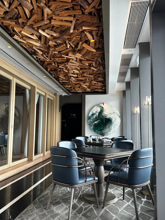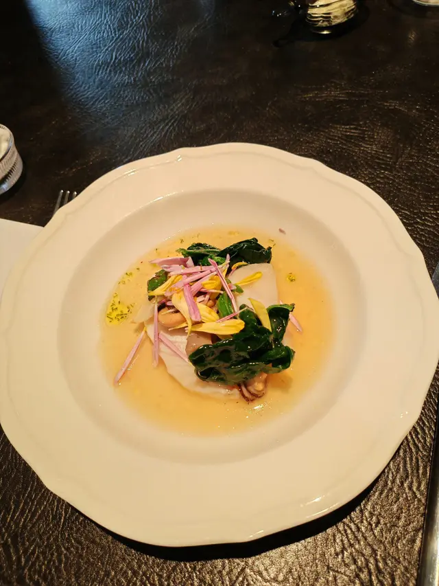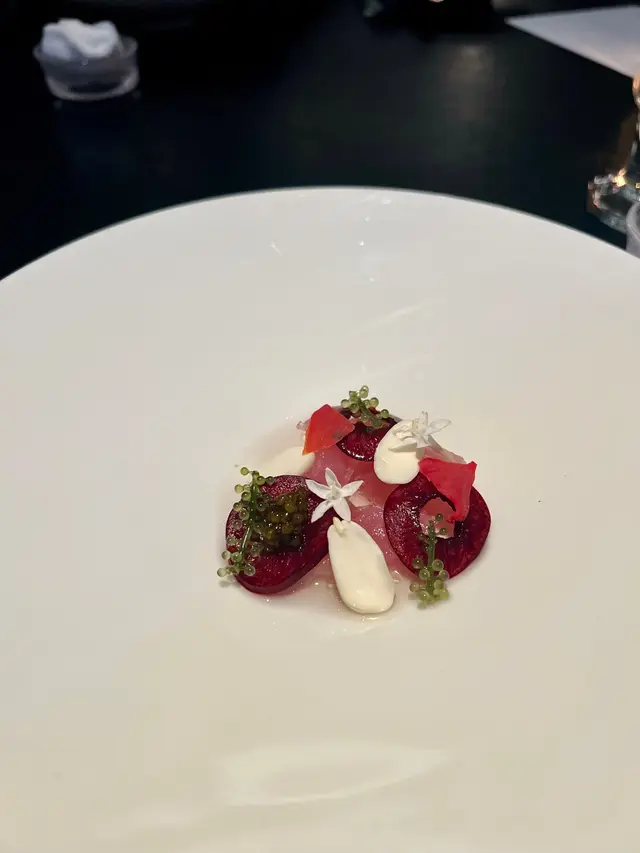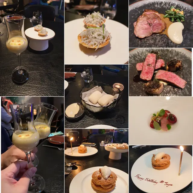 今日到訪吃四道菜午餐。店內裝潢摩登雅致,坐擁開揚維港景緻,氛圍格外愜意。 **布拉塔乳酪.蜜桃.無花果天婦羅.帕爾瑪火腿** 前菜風味清雅,現炸無花果天婦羅外衣酥脆透出天然果甜,蓬鬆不膩;佐以綿密布拉塔乳酪與鹹香帕爾瑪火腿,層次相得益彰。 **鵝肝.竹笙.味噌** 驚艷之作!豐腴鵝肝細膩如脂,幾近入口即化;焦糖鳳梨與腐衣的微酸巧妙平衡脂香,風味絕佳! **法式油甘魚.香橙.蘑菇** 清蒸油甘魚肉質本味淡雅,但白葡萄酒醬汁鮮醇提味,佐以香橙薄片與菌菇,成就一道清爽的夏日料理。 **炭烤伊比利亞豬肉.阿爾卑斯山蒜泥.蜜糖豆** 因選用豬肉,我們選擇八成熟度。慢煮工藝鎖住肉質柔嫩,濃郁蒜泥醬激發脂香,整體風味飽滿。搭配的馬可尼芝士通心粉奶香濃郁,熱騰上桌更顯滋味。 **帕芙洛娃蛋糕.芭樂.香草** 經典帕芙洛娃甜點令人傾心!蛋白霜如雲朵般空氣感十足,每口都迸發漿果鮮爽與塔皮的酸甜交響。 咖啡口感順滑,咖啡甘香醇厚。**大黃根塔.荔枝** 塔皮硬度稍高,切分時略顯費力,內餡質地亦偏厚實。整體屬中規中矩的塔類甜點,尚可接受。-…查看更多