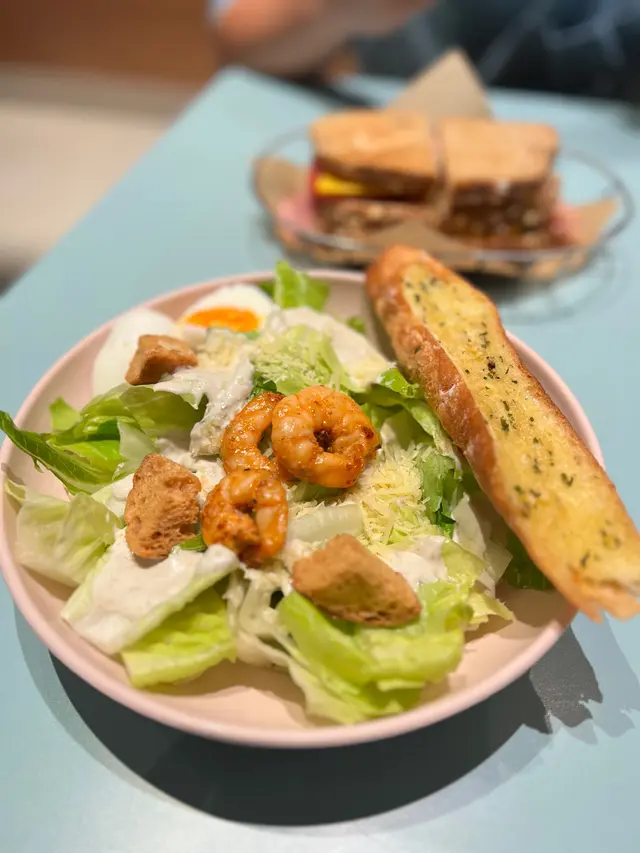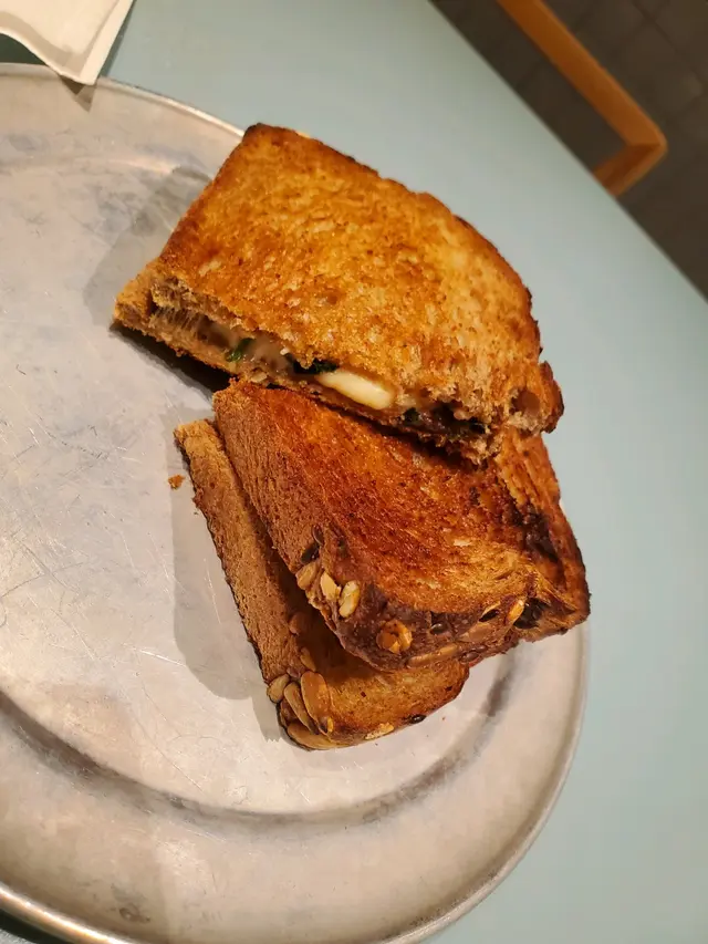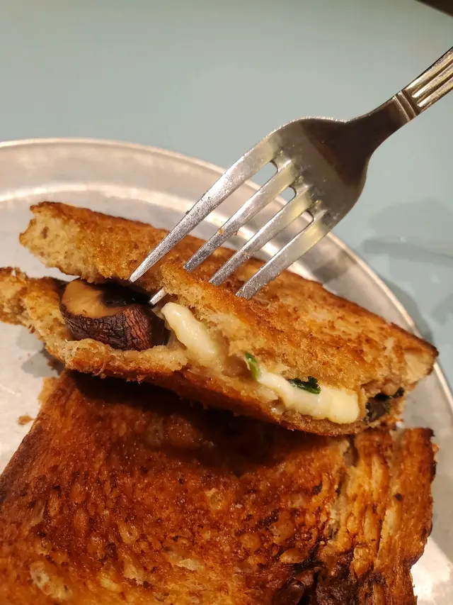 烘菠菜芝士啡菇三文治配咖啡