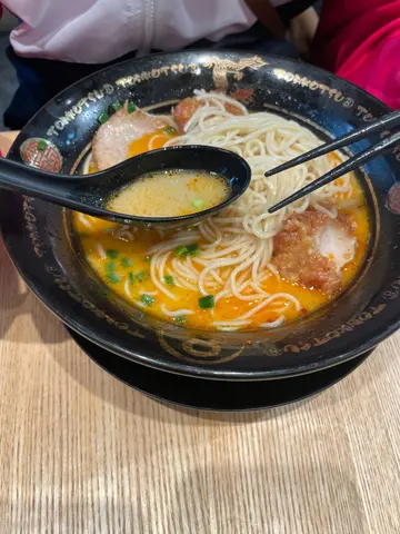 这次品尝的两款豚骨叉烧拉面各有特色。豚骨叉烧拉面(豚骨汤底)豚骨汤底浓郁,经过长时间熬煮,释放出猪骨的香味,汤汁滑润浓厚。拉面吸收了汤底的精华,口感顺滑。配料中的叉烧有嚼口,虽然味道可以,但如果肉质能再提升至更嫩滑,会更为理想。半只温泉蛋煮得恰到好处,蛋黄流心,增加了整体的风味层次。豚骨叉烧拉面(黑麻油汤底)相比传统豚骨汤底,黑麻油汤底带来更深层次的香气。黑麻油的加入让汤底多了一丝独特的焦香味,拉面同样保持良好的弹性与口感。配套餐有饺子,外皮金黄酥脆,份量较少只。另加送饮品,平衡了浓郁的汤面。…查看更多