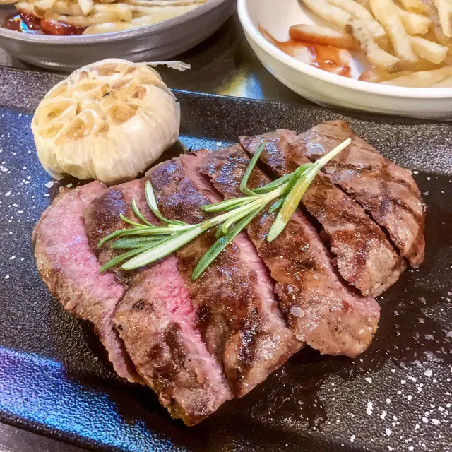位于旺角嘅Top Blade Steak Lab 可以用平民价钱叹高质牛扒仲要有任食薯条·未免太开心˶˙ᵕ˙ )ノ゙"增量版”香草平铁牛扒钟意肉味浓嘅·强烈建议点呢个.ᐟ.ᐟ.ᐟ系店家人气之选·用左每头牛只有两公斤嘅牛肩肉肉质格外软腍柔软·五成熟嘅粉嫩岩岩好简单配搭胡椒盐已经好好食龙虾蕃茄汁海鲜卷卷意粉最近火爆香港嘅卷卷意粉·估唔到呢度都有得食意粉口感QQ弹弹· 龙虾酱汁浓稠度刚好令每条卷卷意粉都挂满酱汁·͜· ︎︎薯条可以无限refill嘅即炸薯条·系幼身薯条黎!用左黑松露油·新鲜香脆真系会食唔停口开心果巴斯克芝士蛋糕有淡淡嘅开心果香·如果再浓郁啲会更开心口感做到细滑柔软·中间仲有少少软心Dirty柠檬特饮 whisky加入whisky嘅柠檬特饮入口好refreshing·岩哂用黎解暑=芒果丝绒泡沫好夏日嘅芒果特饮·仲有粒粒芒果肉…查看更多