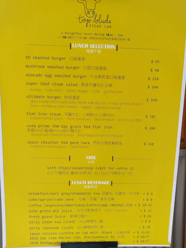 Top Blade Steak Lab (梭椏道) (何文田) 网上订位即赚Rice Dollars 网址: https://s.openrice.com/QrLS0t4S800 地址: 香港何文田梭椏道4A號榮英大廈地舖 电话: +852 39562011