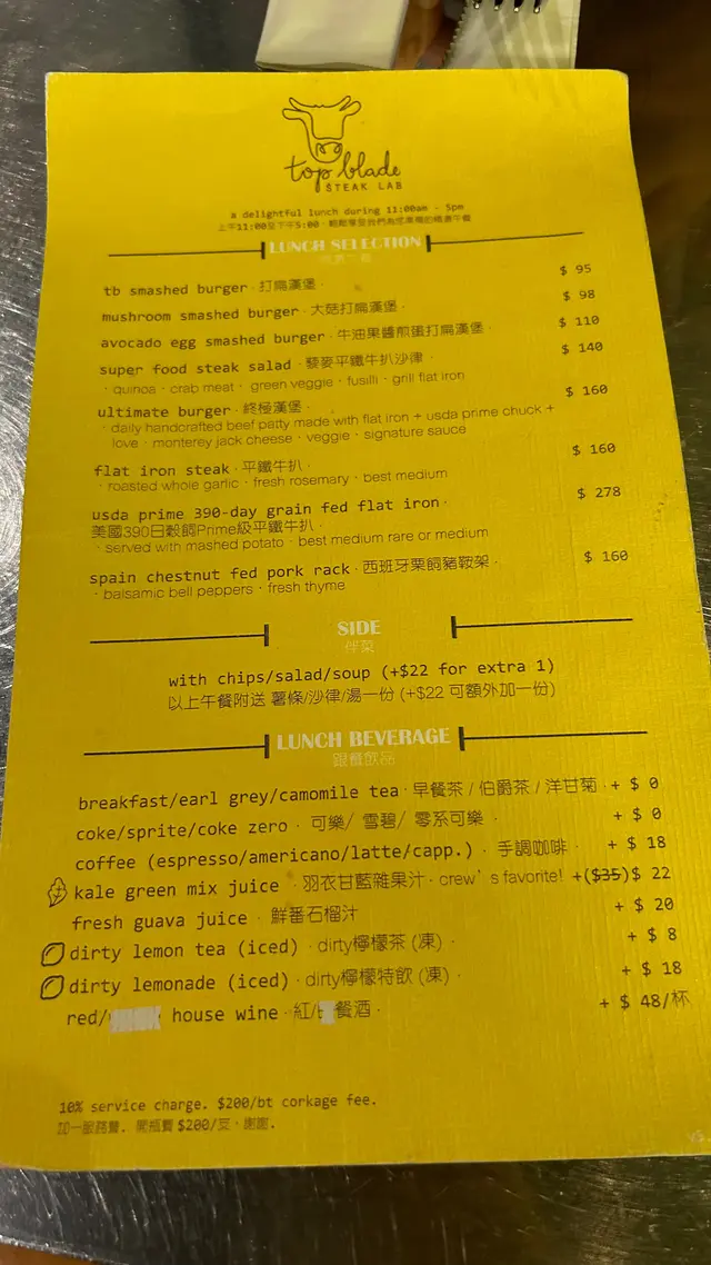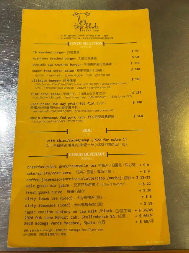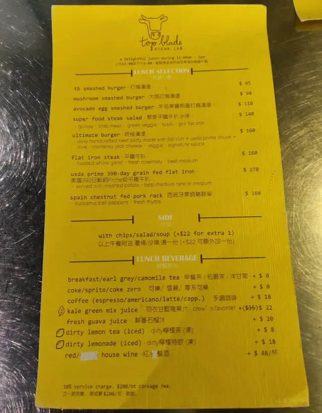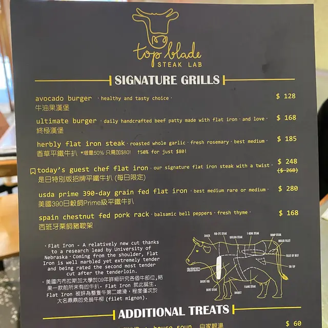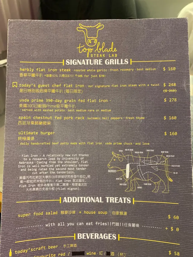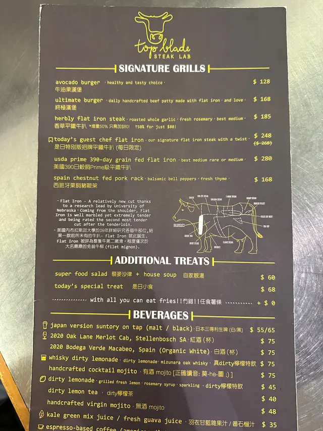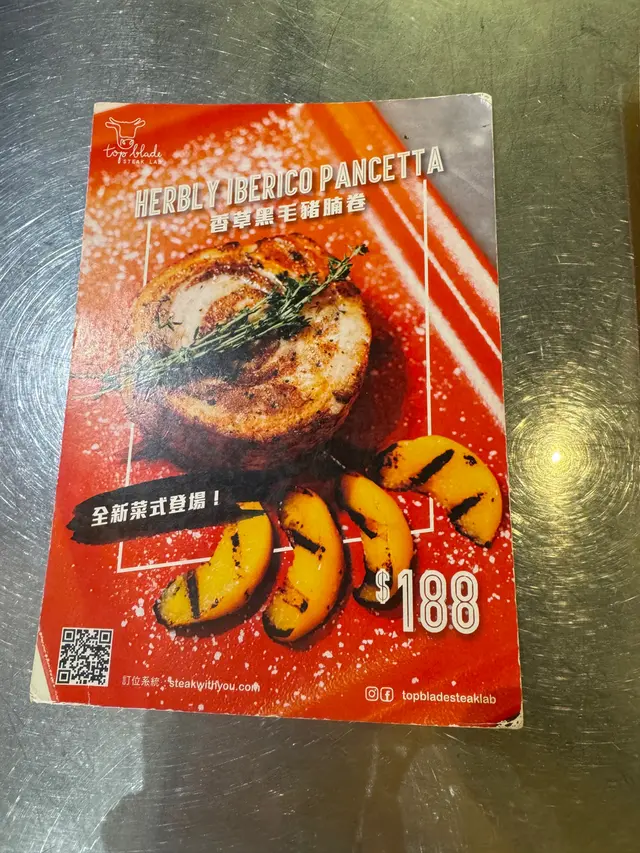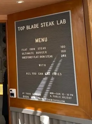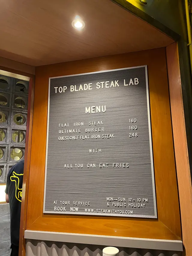 Top Blade Steak Lab (梭椏道) (何文田) 网上订位即赚Rice Dollars 网址: https://s.openrice.com/QrLS0t4S800 地址: 香港何文田梭椏道4A號榮英大廈地舖 电话: +852 39562011