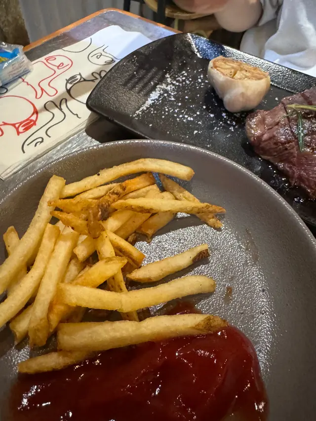 位於旺角嘅Top Blade Steak Lab 可以用平民價錢嘆高質牛扒仲要有任食薯條·未免太開心˶˙ᵕ˙ )ノ゙"增量版”香草平鐵牛扒鍾意肉味濃嘅·強烈建議點呢個.ᐟ.ᐟ.ᐟ係店家人氣之選·用左每頭牛只有兩公斤嘅牛肩肉肉質格外軟腍柔軟·五成熟嘅粉嫩岩岩好簡單配搭胡椒鹽已經好好食龍蝦蕃茄汁海鮮捲捲意粉最近火爆香港嘅捲捲意粉·估唔到呢度都有得食意粉口感QQ彈彈· 龍蝦醬汁濃稠度剛好令每條捲捲意粉都掛滿醬汁·͜· ︎︎薯條可以無限refill嘅即炸薯條·係幼身薯條黎!用左黑松露油·新鮮香脆真係會食唔停口開心果巴斯克芝士蛋糕有淡淡嘅開心果香·如果再濃郁啲會更開心口感做到細滑柔軟·中間仲有少少軟心Dirty檸檬特飲 whisky加入whisky嘅檸檬特飲入口好refreshing·岩哂用黎解暑=芒果絲絨泡沫好夏日嘅芒果特飲·仲有粒粒芒果肉…查看更多