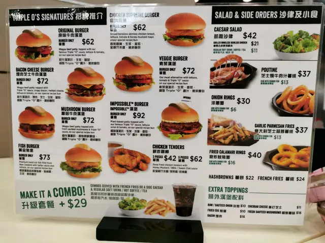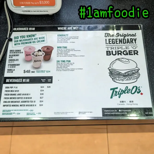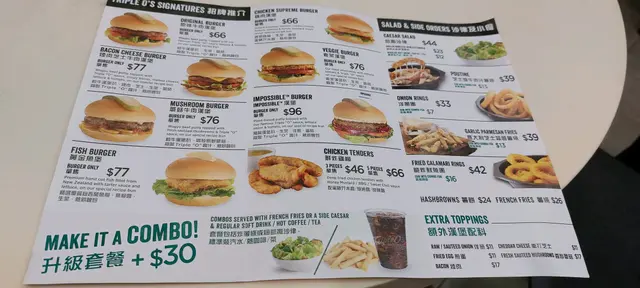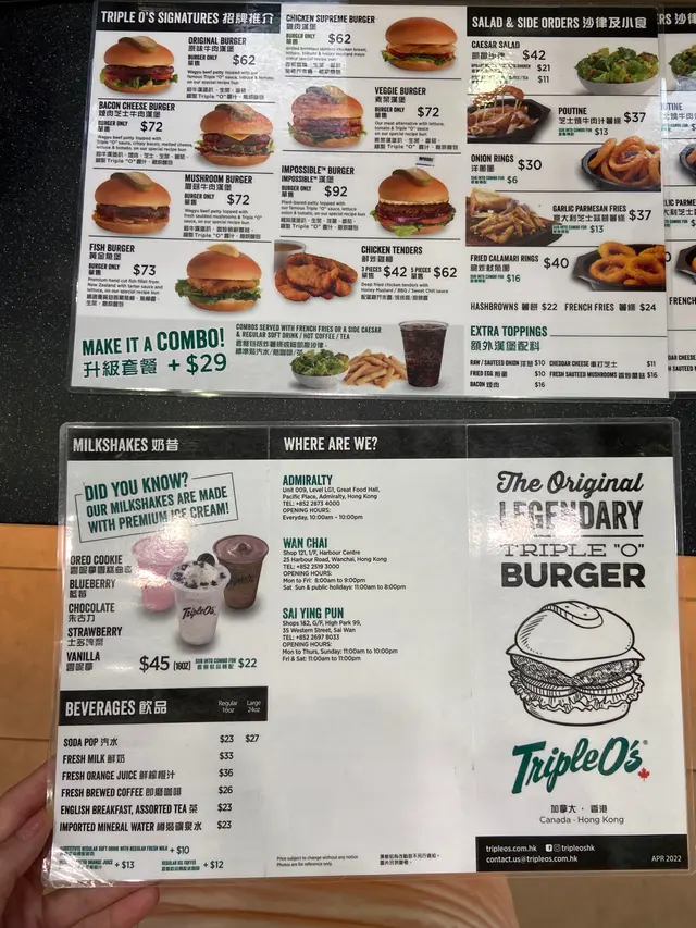 Triple O's by White Spot (海港中心) (湾仔) 网址: https://s.openrice.com/QrLS0NMa000 地址: 香港灣仔港灣道25號海港中心1樓121號舖 电话: +852 25193000