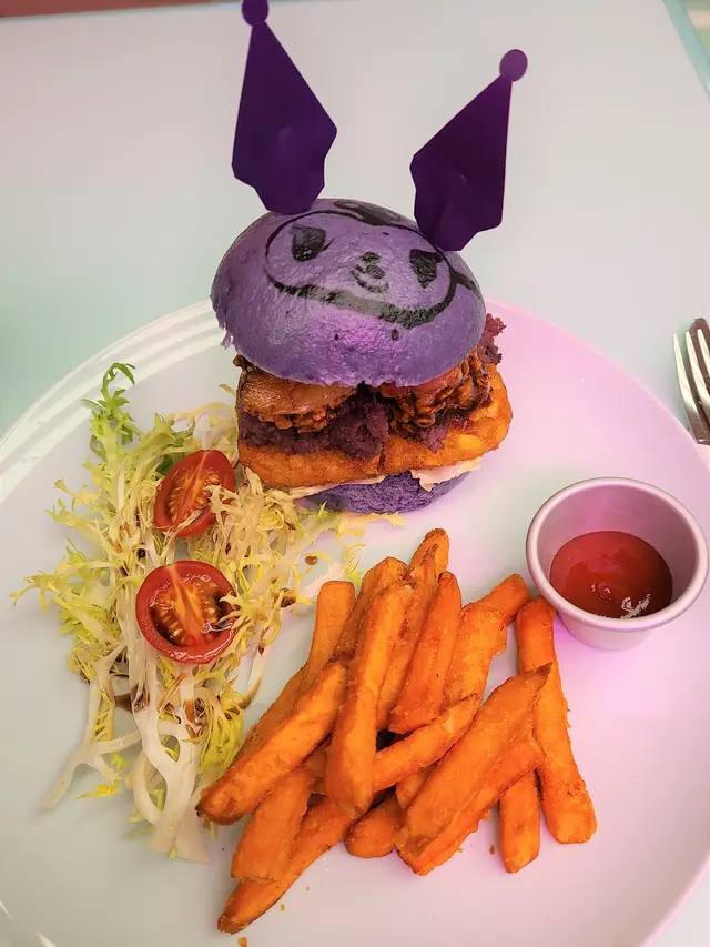 The fried chicken was crunchy and juicy and to have both a hashbrown and purple potato inside was very fulfilling. The sweet potato fries were hot and crispy. Its cute appearance definitely made it more attractive