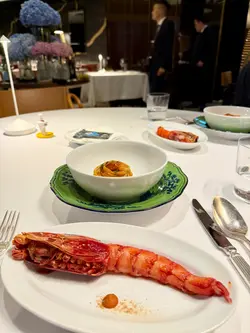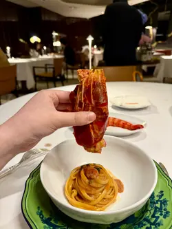 ⭐🇮🇹 25年首夺米芝莲一星🌟意大利Fine Dinning餐厅✨系我近期食过觉得超值嘅Fine Dinning餐厅🤣!餐厅由鼎鼎大名嘅🍄白松露之父Bombana👨🏻🍳 开嘅,招牌系 号称全港唯一供应最大只嘅红虾餐厅😱+ 松露菜式🍄,每位约$2000,食完觉得超值 🤯 ❤️🔥🍽 今次试咗佢哋嘅 Degustation Menu:1️⃣,2️⃣Welcome Snacks:🐟 吞拿鱼他他脆脆 x 鱼子酱|清新鲜味🐟 魔鬼鱼面颊 x 鱼子酱|肉质细嫩唔常见3️⃣Appetizer🐠深海池鱼配柚子香槟🥂|味道浓郁🦀(当日special)蟹肉沙律+蛋黄酱+鱼子酱|鲜甜到爆4️⃣🌿海胆配白芦笋|清爽又浓郁🦞蓝龙虾配蘑菇汁|肉厚弹牙 煮到啱啱熟,同蘑菇香气搭配得很好5️⃣,6️⃣,7️⃣ Main Course🍝半生熟巨大红虾 配意粉|必试💯🥩澳洲和牛牛里脊肉配姬松茸|浓郁肉味和牛唔会太油腻🐑羊鞍+羊舌|层次丰富,俾佢烧到脆卜卜嘅外皮惊艳到😋🍄黑松露意大利饭|店员即场刨新鲜嘅黑松露😛8️⃣Pre-dessert乳酪Gelato + 哈密瓜脆饼|食完主菜好滞之后,即刻清新一下😽9️⃣ Dessert 🍮开心果 Gelato + Coffee 慕丝卷🍓草莓+桃慕丝|超梦幻✨🔟 仲有「朱古力车」🚗🍫 |任食到饱!…查看更多