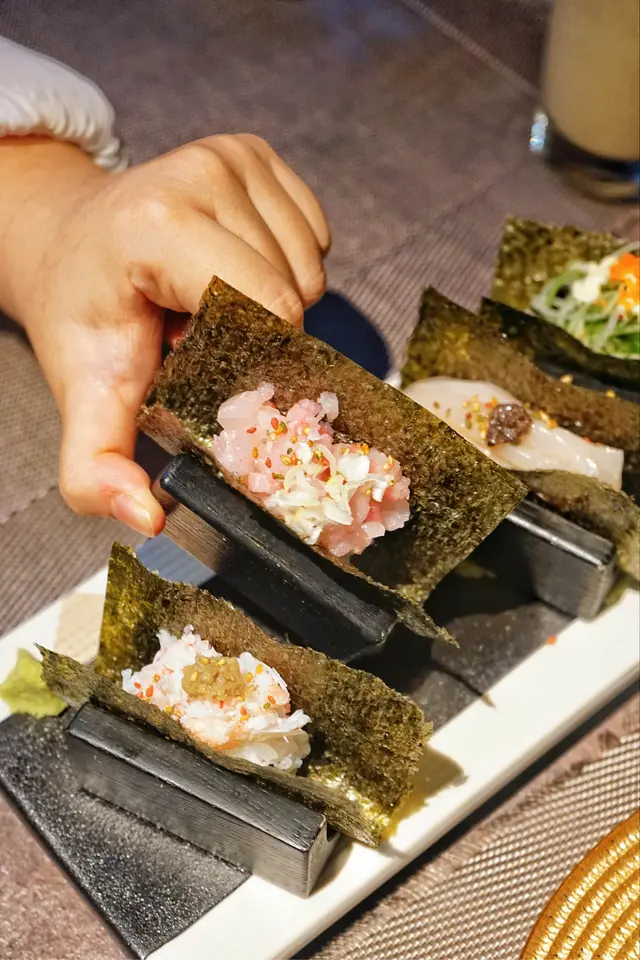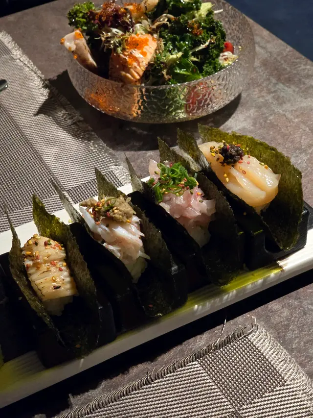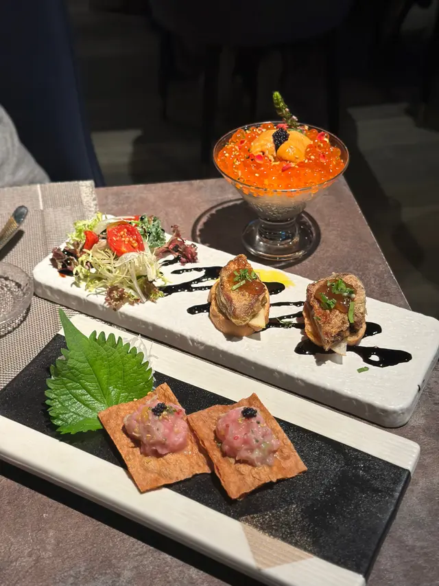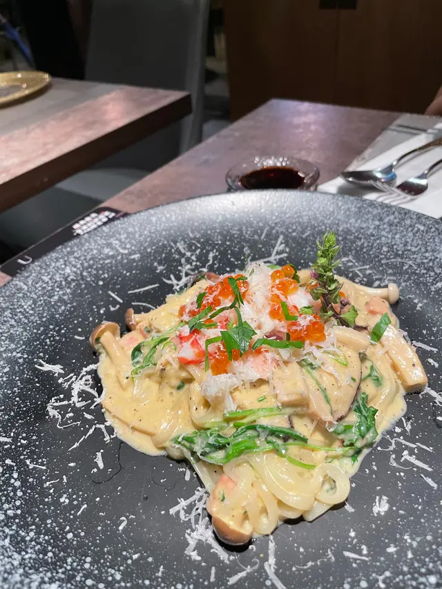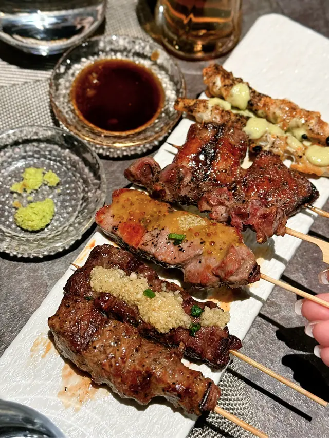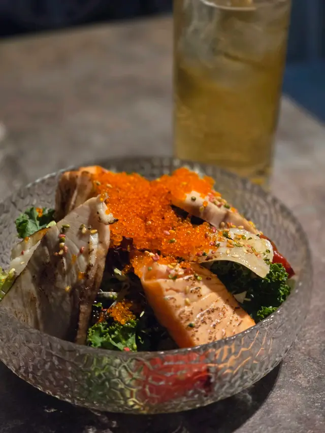 串燒🍡最平$14串?居酒屋竟然有西式bar枱🍸?除咗壽司🍣串燒🍡之外,仲可以食到西式意粉🍝?無錯,U IZAKAYA @uizakaya 就係一間融合咗日西料理嘅居酒屋,而且座位闊落,空間感十足,好適合一班朋友嚟chill下😆。火炙刺身沙律 $98厚切三文魚及左口魚十分肥美🥰,火炙後🔥把油份迫出,魚油味香濃仲帶有陣陣焦香味,混理新鮮爽脆的沙律菜🥗及鹹鮮的蟹籽,好食又醒胃😋。🌟手卷火炙左口魚邊 $40左口魚肉質鮮嫩滑溜,油脂豐腴,油味香濃😋。松葉蟹肉 $40松葉蟹鮮香甜味,肉質細嫩軟滑🥰。蔥油甘魚蓉 $24蔥油甘魚肉質爽滑細膩,帶淡淡的甘甜味😍。黑松露帶子 $24帶子口感柔軟嫩滑,十分鮮甜🤗。🌟串燒燒牛柳 $14橫格肌 $30牛柳及橫格肌🐂蒜香味肉質緊緻細膩,黑椒味較重帶微微香辣味😋。羊西冷 $30羊西冷🐏肉質軟腍,蔥花味道鮮香,芥末味道香濃😋。雞腎 $24(2串起)口感爽彈,鮮味焦香😍。雞皮 $24(2串起)口感鬆脆乾身,帶陣陣油香🥰。豚肉露筍卷 $24(2串起)爽脆香甜又多汁😋。厚切牛舌芯 $42口感爽滑彈牙,肉質香嫩又juicy😍。蒜香意粉 $74意粉🍝煮得軟硬剛好,口感柔韌蒜味濃郁,味道香辣,蜆份量勁多,蜆肉肥美飽滿,鮮香多汁😋。Ginger High Ball $68荔枝乳酸梳打 $48…查看更多