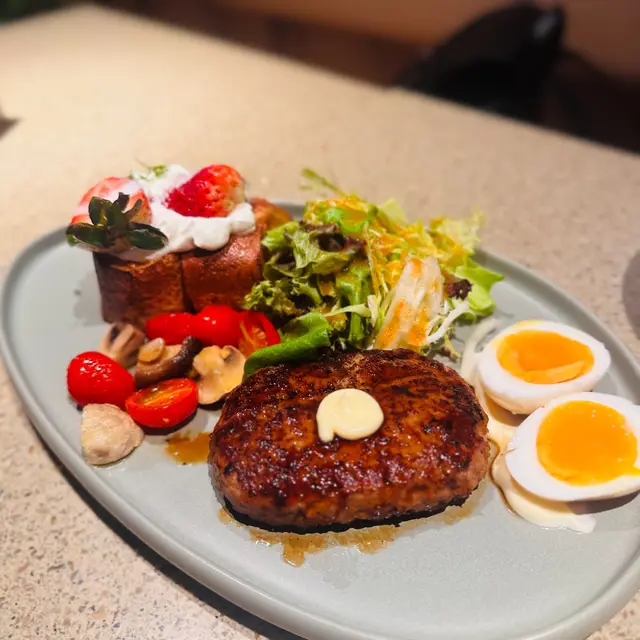 最近放工之后,想同朋友揾个地方慢慢倾下计,就谂起荃湾广场嘅 「ufufu cafe」。呢间系源自日本佐贺既咖啡品牌,主打西日式料理,装潢系暖暖既日式木系风,仲有开放式厨房,食野同时都可以见到师傅煮野既情景🍳,店内到处摆满日式盆景,感觉好疗愈,好有日本小镇既味道🌿。 .🍔 酱油烧鸡腿汉堡 $88一上枱已经闻到阵阵香味🤤,汉堡包面头松软,咬开仲感觉到内面煎香左,带少少脆口。夹住既酱油烧鸡腿咸香味岩岩好,鸡肉嫩滑到不得了🥰,仲配埋清新既车瓜、生菜同蕃茄,口感层次好丰富,食落非常满足。 .🍕 番茄罗勒薄饼 $118批底厚薄岩岩好,咬落去吾会太硬又有少少烟韧口感🫶。上面舖满厚厚既芝士,仲有拉丝效果,芝士控一定会好开心🧀!番茄既酸香加埋罗勒既清香,啖啖都好清新又吾腻口。 .🍑 山梨県白桃芭菲 $148 (期间限定✨) 呢款一定要推!山梨县既白桃向来出名,口感细致又多汁😋,餐厅入面用高杯装,一上枱已经感觉好精致好想影相📸。顶层系原只白桃切成一块块,仲配埋食用花做装饰🌸。白桃下面系一层层滑滑既cream,四周围仲有蓝莓同啫喱,咬落去既白桃清甜多汁,带少少轻脆感,真系每一啖都好幸福💗。 …查看更多