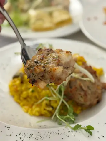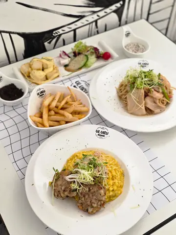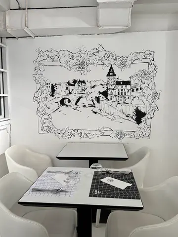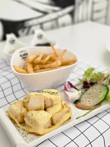 第一次嚟呢间黑白得咁纯粹嘅餐厅,如果唔系朋友介绍,都唔知湾仔有一间人气爆灯嘅楼上铺Cafe,平日去都有八成满🫣走过长长嘅楼梯,就会到达餐厅,餐厅呈吕字形,在餐厅走过通道进入神秘嘅空间。小食其实有唔少嘅选择,保守啲就拣咗「蜜汁焗鸡中翼 」中规中矩,是一道唔错嘅开胃菜!😝如果未食就一定会怀疑佢呢张Menu-「港式情怀」🤔啲菜名加埋好似唔系太match咁🥸「大澳虾酱鱿鱼筒鲜凤尾虾炒意粉」未食之前就谂紧真系会match嘅咩?大澳虾酱平时应该用嚟炒通菜,有印象都知道佢咸咸地,从来冇谂过嘅嘢,原来同炒意粉有几match!「红烧蜜汁猪腩肉片五香肉丁烩意大利饭」净系个名都水蛇春咁长😝唔知大家有冇食过五香肉丁炒饭,五香肉丁烩意大利饭就有呢种感觉,不过个味道就冇炒饭咁咸,反而用嚟烩饭几有特色,又系一个估唔到咁match嘅组合!红烧蜜汁猪腩肉片,我会形容佢好大块,蜜汁都好香浓🥸其实两个主食都几饱下,二姑妈话见到「富士芝樱祭-丸久小山园抹茶 Tiramisu 」=Lava🌋okok 明嘅明嘅,即刻安排上😏丸久小山园抹茶Tiramisu,个芝士好滑,又唔会话太腻,反而嘅欣赏佢嘅火山灰,用咗玫瑰花磨碎+威化饼碎,扮火山灰,一嚟个意境到,二来系match埋Tiramisu 一齐真系几好食😛我就比较偏爱「MANGO POMELD SAGO」,颜色好靓,有层次,系冬天饮沙冰冻咗少少🥶✦ 蜜汁焗鸡中翼 $88✦ 大澳虾酱鱿鱼筒鲜凤尾虾炒意粉 $158✦ 红烧蜜汁猪腩肉片五香肉丁烩意大利饭 $168✦ 富士芝樱祭-丸久小山园抹茶 Tiramisu $118✦ VIRGIN PEACH MOJITO $68✦ MANGO POMELD SAGO $68…查看更多