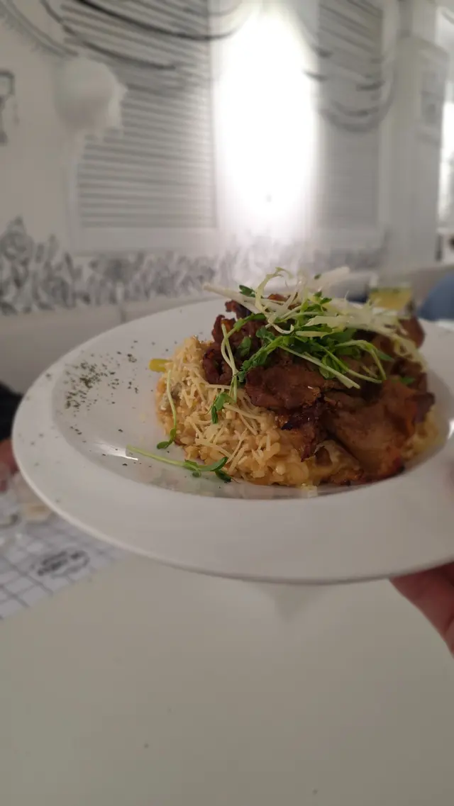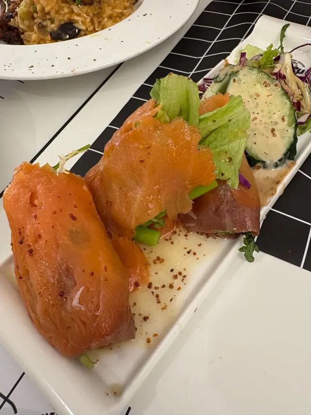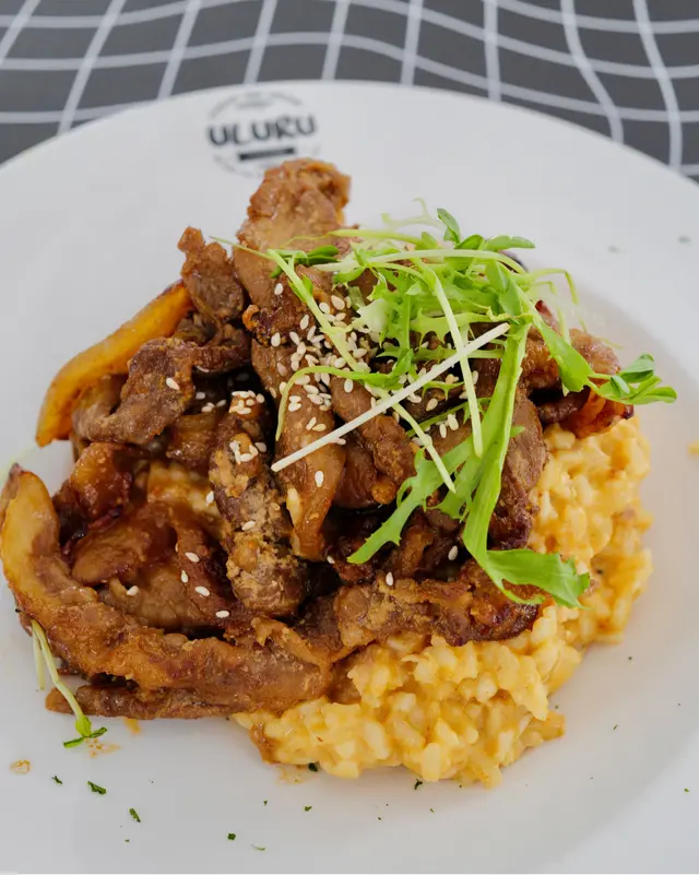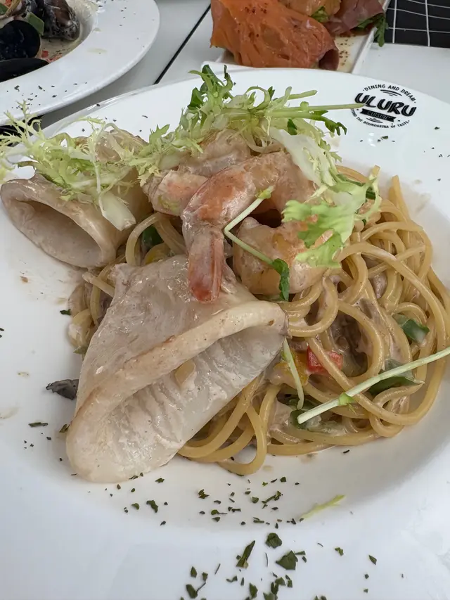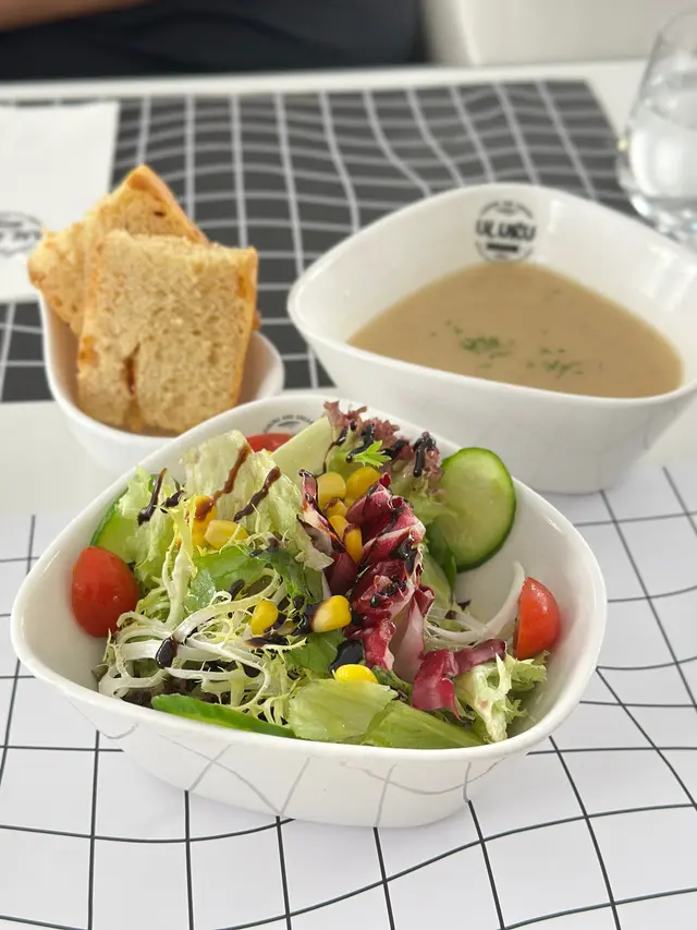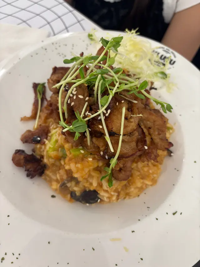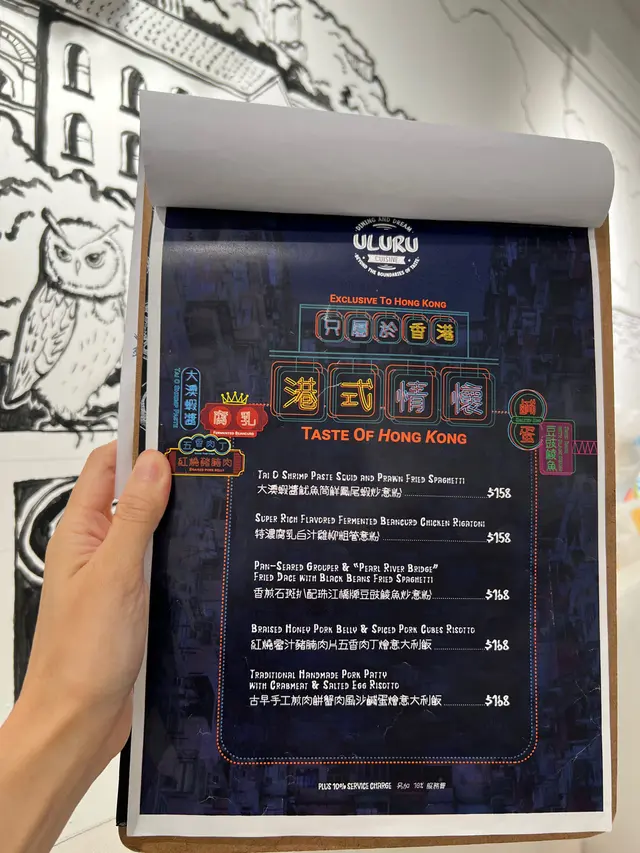 放假同仔仔去灣仔這間人氣打卡Cafe「ULURU」打卡食飯。餐廳以黑白漫畫風做設計,牆身與每個角落都充滿着滿滿的藝術感,非常打卡!近排還推出了港式情懷晚餐,將港式經典注入西餐,創新又出色!🔸2D Cake真係好可愛,打卡一流!😍外層嘅cream唔會好甜,海綿蛋糕口感輕盈夾住草莓果醬,香甜可口,一點也不膩!🔸夢 森の家呢款又係相機先食!蘑菇造型超級可愛,切開原來外層係朱古力皮,裏面係士多啤梨蛋糕,旁邊伴著水果花同餅碎,好似森林咁美得像童話!🔸 特濃腐乳白汁雞柳粗管意粉估唔到都幾夾,腐乳嘅鹹香同奶香味嘅白汁混合非常濃郁,雞柳十分嫩滑,粗管意粉掛汁有嚼勁!🔸 紅燒蜜汁豬腩肉五香肉丁意大利飯豬腩肉外皮酥脆,香甜而不膩,配搭五香肉丁的香辣增添層次感。意大利飯吸收了肉汁的精華,一口接着一口,欲罷不能!🔸芝士玉子安格斯漢堡包配搭薯條安格斯牛肉厚實多汁,肉質鮮嫩,與融化嘅芝士相互交融,增添左濃郁嘅奶香,薯條亦金黃酥脆!🔸炸香脆粗直薯條配黑松露醬雙重黑松露醬香味濃郁,薯條金黃酥脆,薯條控必點!臨走剛好下雨,餐廳還送了我們一把精美的雨傘,非常貼心!是一次難忘的用餐體驗!…查看更多
