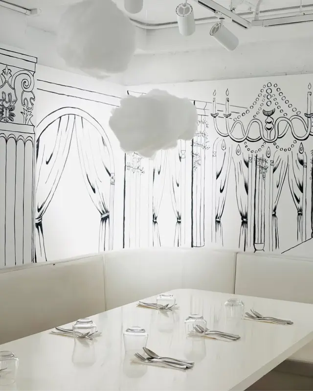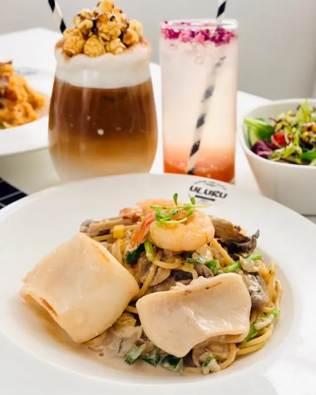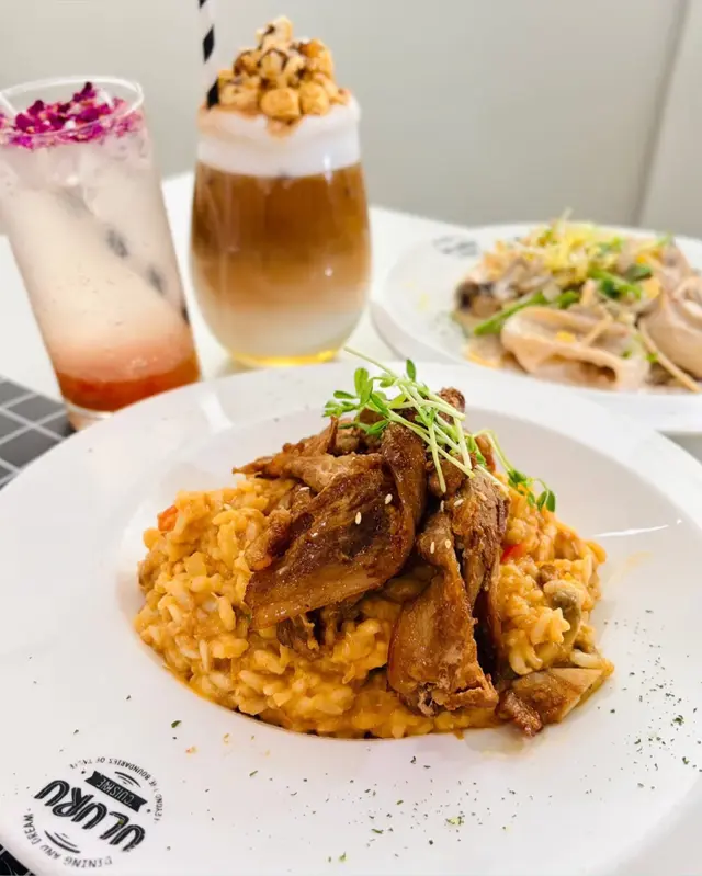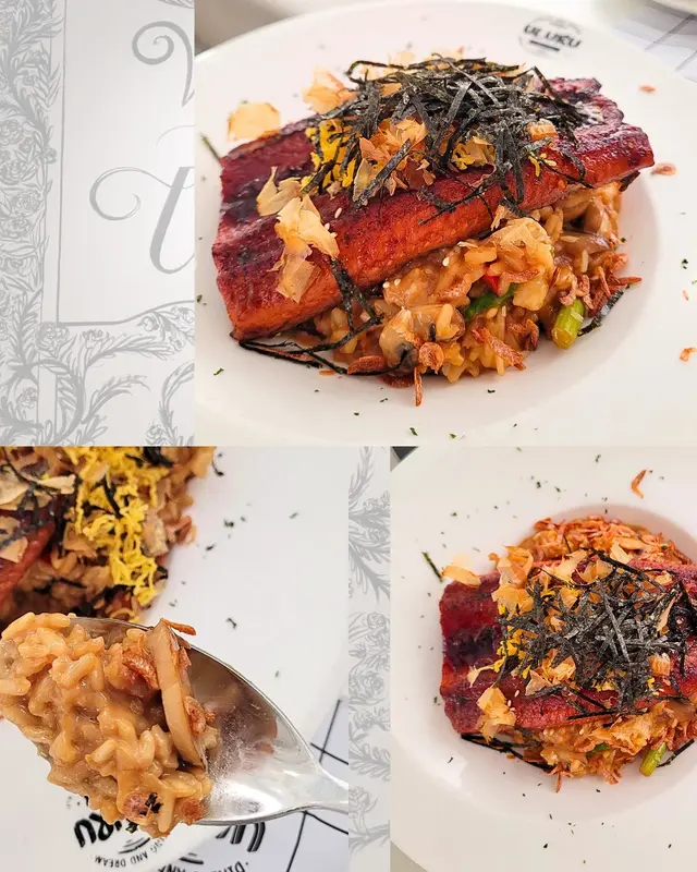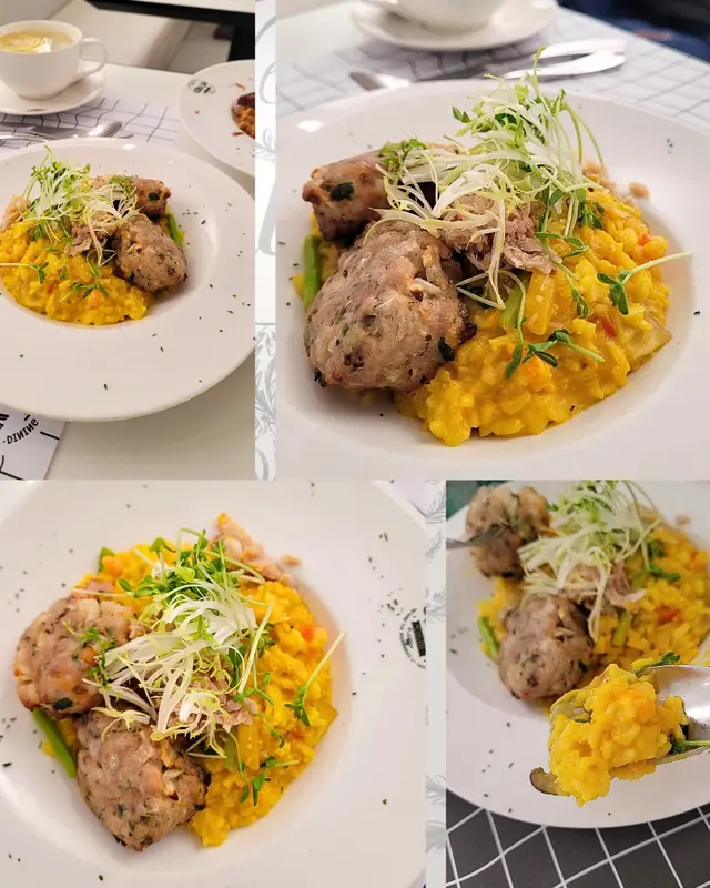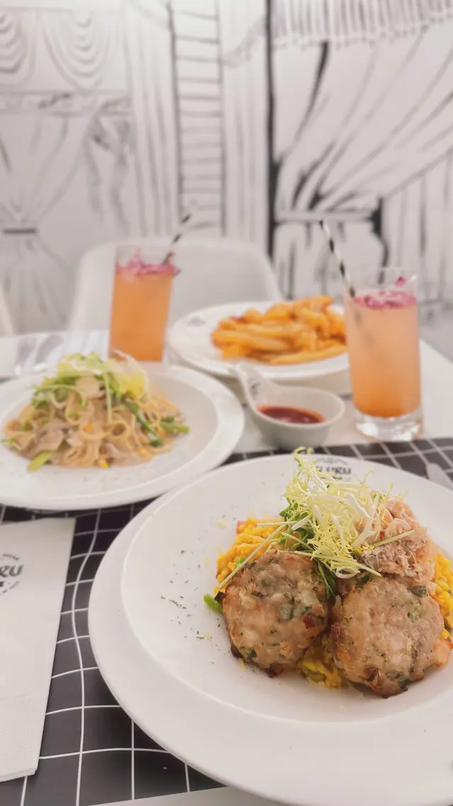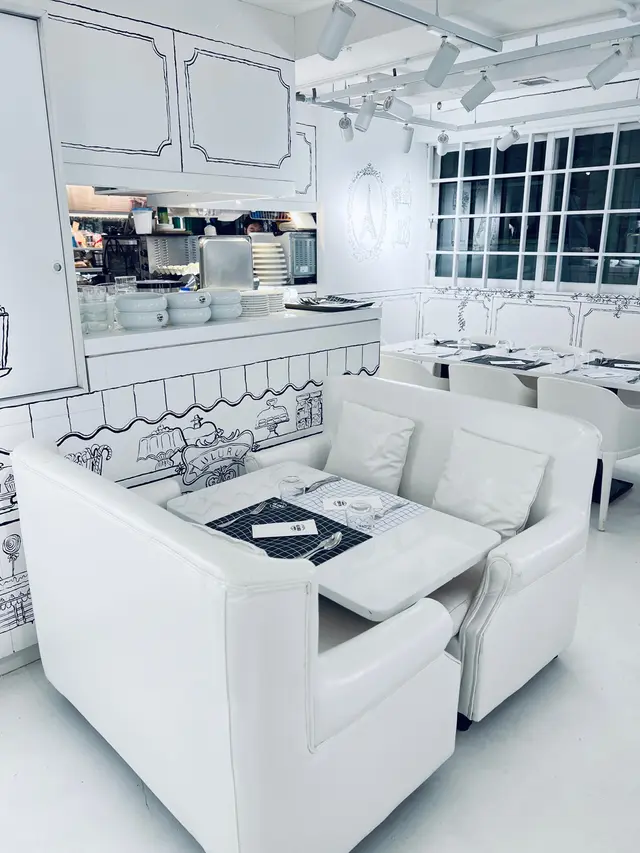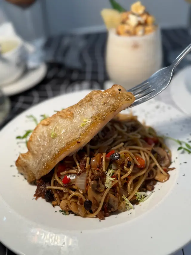 第一次嚟呢間黑白得咁純粹嘅餐廳,如果唔係朋友介紹,都唔知灣仔有一間人氣爆燈嘅樓上鋪Cafe,平日去都有八成滿🫣走過長長嘅樓梯,就會到達餐廳,餐廳呈呂字形,在餐廳走過通道進入神秘嘅空間。小食其實有唔少嘅選擇,保守啲就揀咗「蜜汁焗雞中翼 」中規中矩,是一道唔錯嘅開胃菜!😝如果未食就一定會懷疑佢呢張Menu-「港式情懷」🤔啲菜名加埋好似唔係太match咁🥸「大澳蝦醬魷魚筒鮮鳳尾蝦炒意粉」未食之前就諗緊真係會match嘅咩?大澳蝦醬平時應該用嚟炒通菜,有印象都知道佢鹹鹹地,從來冇諗過嘅嘢,原來同炒意粉有幾match!「紅燒蜜汁豬腩肉片五香肉丁燴意大利飯」淨係個名都水蛇春咁長😝唔知大家有冇食過五香肉丁炒飯,五香肉丁燴意大利飯就有呢種感覺,不過個味道就冇炒飯咁鹹,反而用嚟燴飯幾有特色,又係一個估唔到咁match嘅組合!紅燒蜜汁豬腩肉片,我會形容佢好大塊,蜜汁都好香濃🥸其實兩個主食都幾飽下,二姑媽話見到「富士芝櫻祭-丸久小山園抹茶 Tiramisu 」=Lava🌋okok 明嘅明嘅,即刻安排上😏丸久小山園抹茶Tiramisu,個芝士好滑,又唔會話太膩,反而嘅欣賞佢嘅火山灰,用咗玫瑰花磨碎+威化餅碎,扮火山灰,一嚟個意境到,二來係match埋Tiramisu 一齊真係幾好食😛我就比較偏愛「MANGO POMELD SAGO」,顏色好靚,有層次,係冬天飲沙冰凍咗少少🥶✦ 蜜汁焗雞中翼 $88✦ 大澳蝦醬魷魚筒鮮鳳尾蝦炒意粉 $158✦ 紅燒蜜汁豬腩肉片五香肉丁燴意大利飯 $168✦ 富士芝櫻祭-丸久小山園抹茶 Tiramisu $118✦ VIRGIN PEACH MOJITO $68✦ MANGO POMELD SAGO $68…查看更多