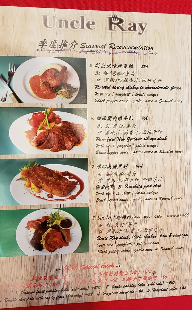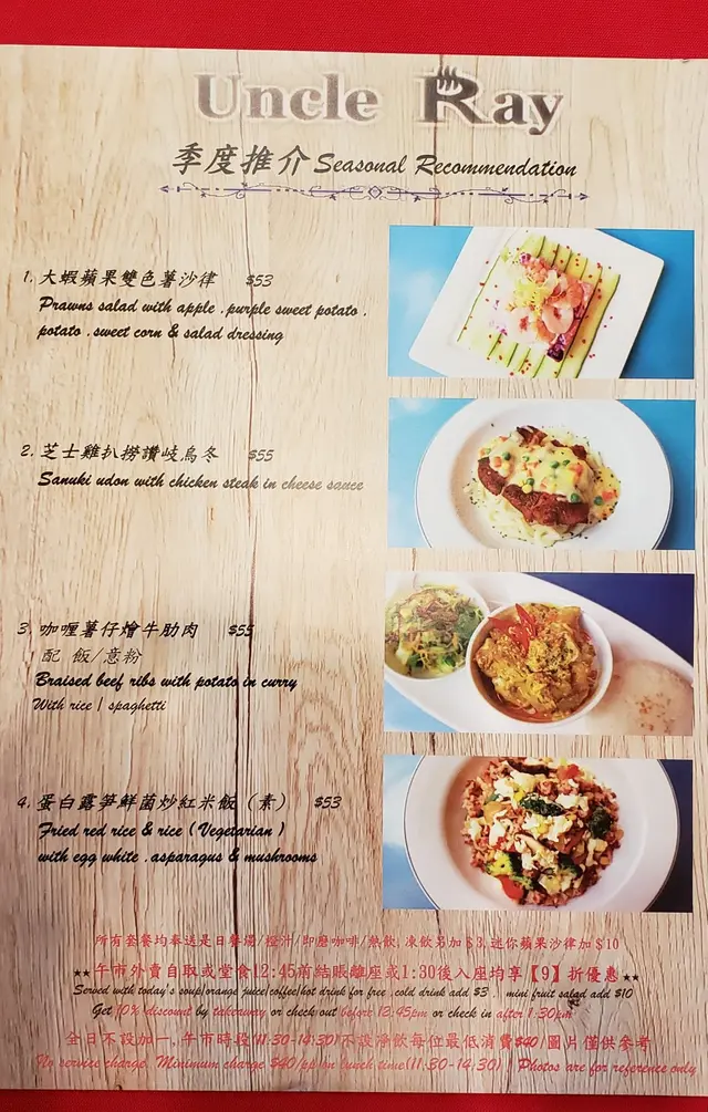 Uncle Ray (九龙湾) 网址: https://s.openrice.com/QrLS0zp8000 地址: 香港九龍灣九龍灣常悅道3號企業廣場2期1樓大堂 电话: +852 27569967