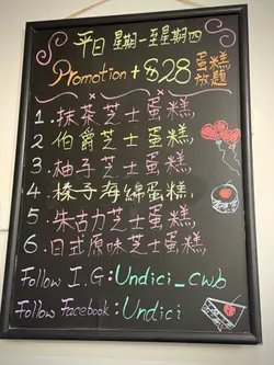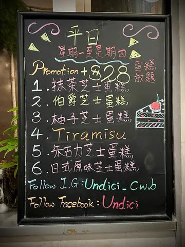 《Undici - 铜锣湾》估唔到铜锣湾都仲有间咁有heart既楼上cafe😉事缘前排见网上有人介绍呢间cafe既蛋糕放题,听讲意粉都整得唔错而且价钱又实惠👍🏻临上堂前就同同学上左去试左几个菜式同埋蛋糕🍰💁🏻♀️芝士秘捞薯条 $58呢个薯条既味道有啲似芝士味既shake shake 薯条,个薯条好松脆,放冻左个外皮都仲系脆口的,几惹味👍🏻$58 算几大份💁🏻♀️脆炸无激素鸡翼配香辣蛋黄酱 $58虽然话个鸡翼配香辣蛋黄酱,但我个人就唔觉得佢好辣,反而系一上枱时会好热气,食果时要小心🤫个酱有啲似大阪烧汁,带少少甜味💁🏻♀️厨师发板 $128主食我地拣左个厨师发板,当日系三文鱼黑松露野菌Risotto,三文鱼都有五六片,份量十足,黑松露酱同油都好香,不过唔系每次既厨师发板都一样,记住要问下啦💁🏻♀️爆谷朱古力班戟 $78甜品我地叫左呢款比较甜既朱古力班戟🥞配上爆谷粒,个外型都几精致架😍班戟上面放左朱古力雪糕🍦仲有一件朱古力芝士蛋糕同埋薄身班戟,朱古力芝士蛋糕够晒浓郁同有芝士味,两个人share 刚刚好💁🏻♀️热蜜桃果粒茶 $46朋友𠮶杯热蜜桃果粒茶真系有水果粒的🥰个茶要泡一阵先有水果味,味道相对淡少少🤏🏻不过清清地,解腻一流💁🏻♀️焦糖脆脆鲜奶咖啡 $42而我就叫咗杯冻嘅焦糖脆脆鲜奶咖啡,上面放咗蜜糖脆脆粒,而咖啡冇另外加糖浆,配合焦糖脆脆粒就啱晒,上面仲有拖肥糖浆调味,饮落creamy同香浓…查看更多