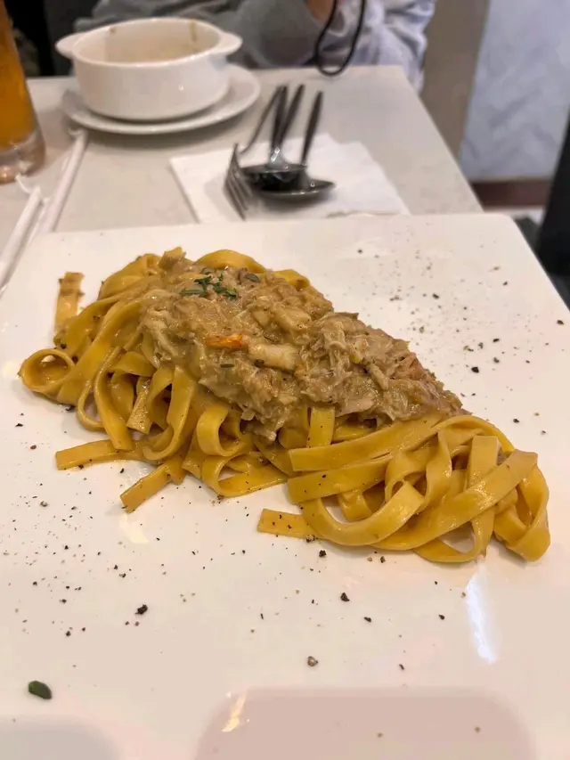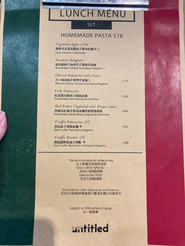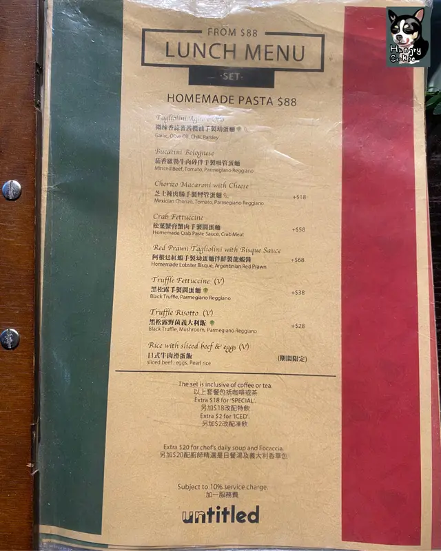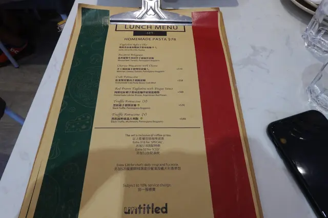Untitled cafe & bar (已結業)早排朋友話呢間好有良心嘅餐廳就黎結業所以就去咗食佢嘅dinner 我地冇book位 但好彩等一陣就有位啦~Set for two HK$389是日餐湯-粟米湯粟米嘅味道好香濃 而且飲落好creamy唔會覺得有好重嘅味精味~意大利巴馬火腿呢個有啲surprise 佢比咗好多塊巴馬ham 一啖ham 一啖麪包咁食 唔錯~避風塘燒賣HK$68呢個好多人推薦 睇落又好似幾吸引每一個杯都裝住粒燒賣入面有啲避風塘味粉 但食落就覺得避風塘粉同燒賣係分開嘅~如果有多啲椒鹽粉就更加正~松葉蟹膏蟹肉手製闊蛋麵(+$10)我地一直都好期待呢個意粉 因為好鍾意食蟹~蟹肉蟹膏嘅份量好足夠 可以撈曬成碟意粉呢個蟹肉蟹膏食落有少少苦味 但都係係接受範圍之內~可以一試嘅~ 阿根廷紅蝦手製幼蛋麵伴鮮製龍蝦醬(+$18)呢個意粉有好香嘅紅蝦味但配呢隻幼身嘅意粉有啲中式嘅感覺意粉偏乾身 好似食緊炒意粉咁但味道係唔錯嘅~好啦呢間餐廳6月4號已經結業~呢篇就純粹做一個紀錄~…查看更多