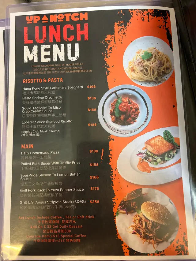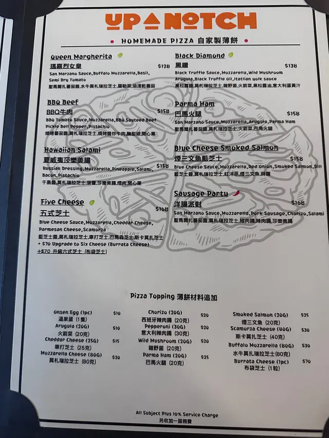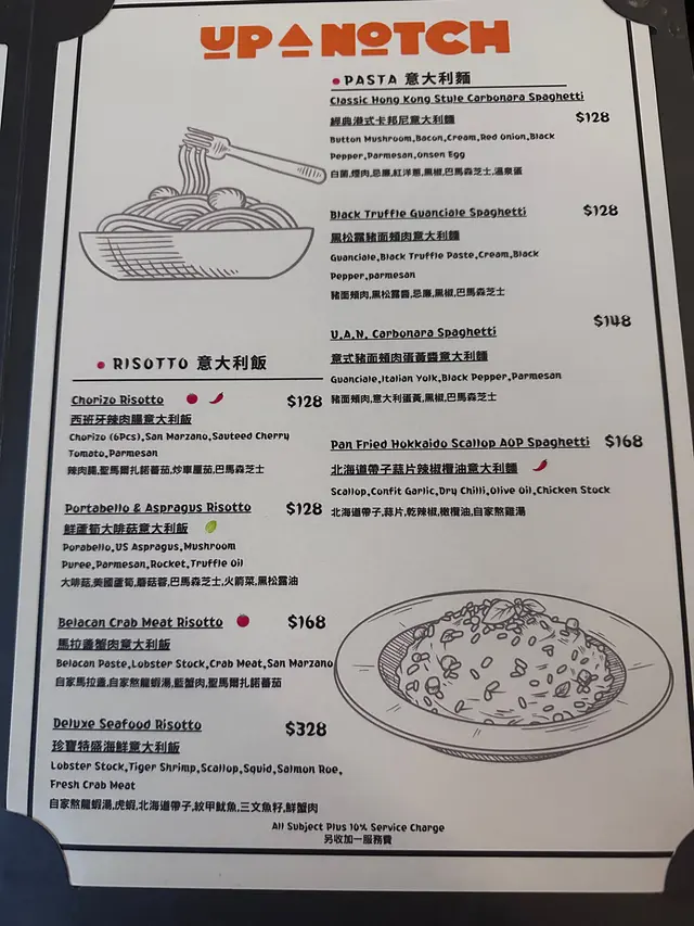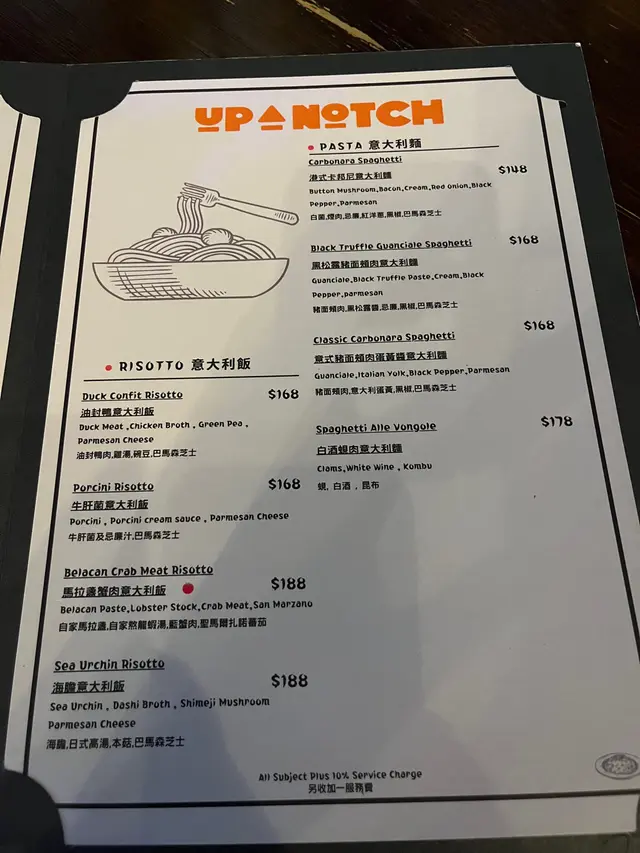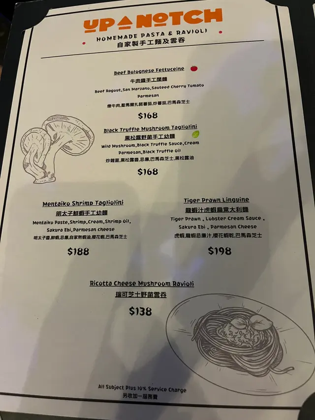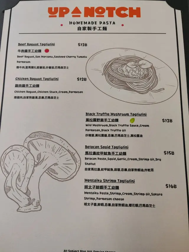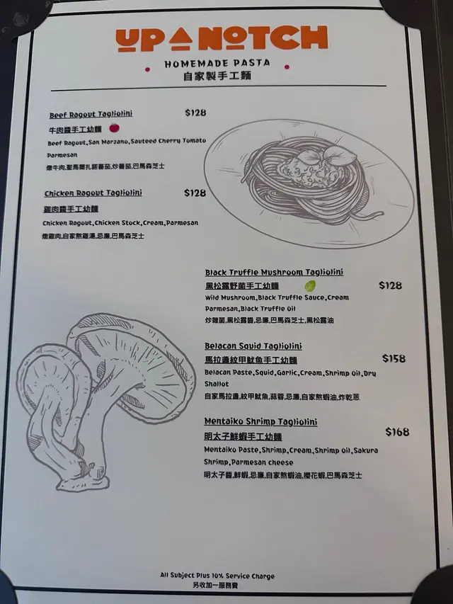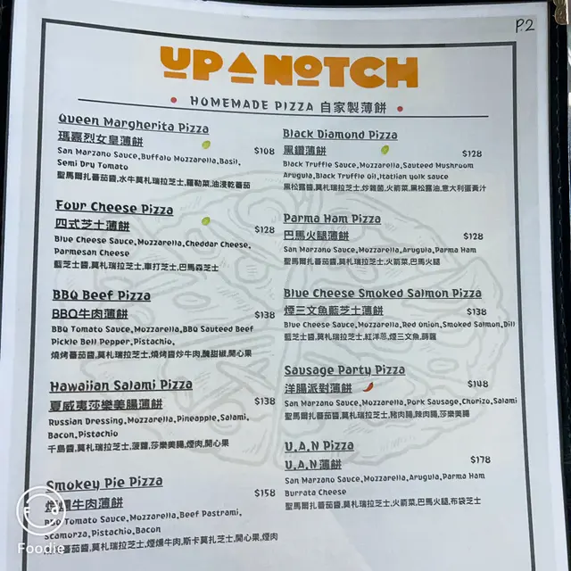Up a Notch Homemade Pasta & Pizza (旺角) 网址: https://s.openrice.com/QrLS020qC00 地址: 香港旺角砵蘭街160號地舖 电话: +852 96604866