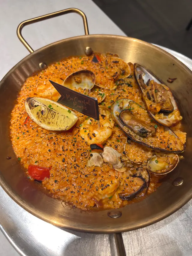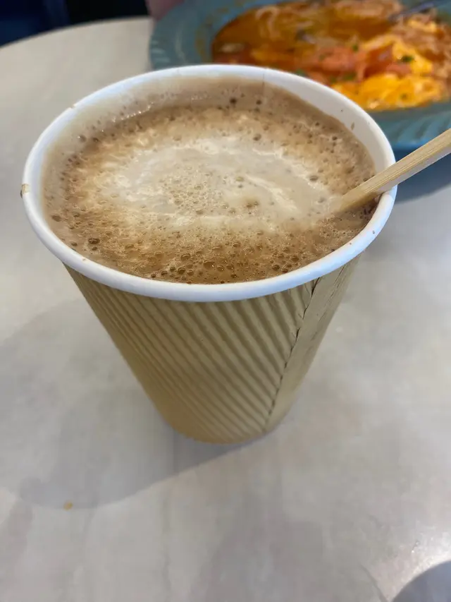 龍蝦湯蛋蓋天使麵$45,flat white +$8