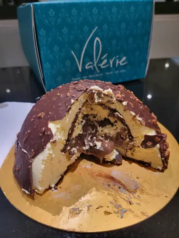 巨大化金莎朱古力蛋糕,就像吃一颗金莎一样。满满的hazelnut,朱古力流心,碎花生,云尼拉mousse,幸运地内里还有一颗原粒金莎的惊喜。不太漏,算轻盈,不会食得太有负担,蛋糕用金莎纸包围,还贴了贴纸🤣❤️…查看更多