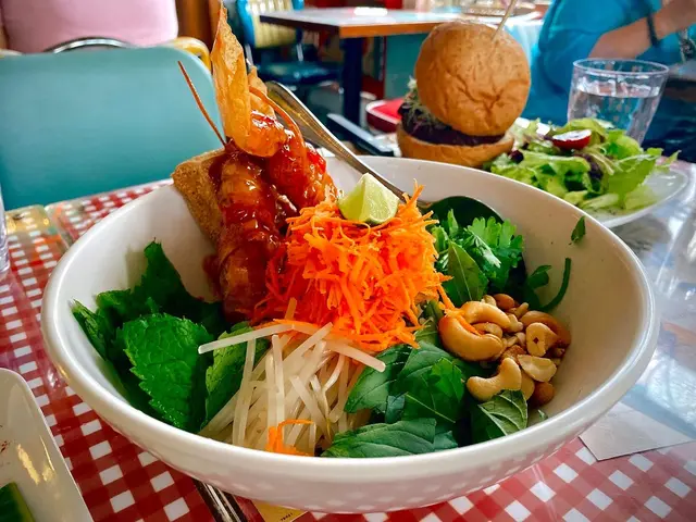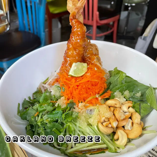 越式撈米粉(室温) 伴香草、炸豆腐、腰果、及大豆作物 配自家製有機檸汁