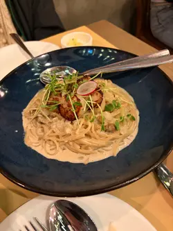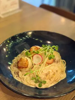 呢次同朋友庆生,特登拣咗荃湾 Vision 8(兆和街34号永安楼地舖)~一入去就好钟意佢个氛围💫 黄色灯光暖暖地,好chill、好舒服,成个 vibe 超适合同朋友慢慢食慢慢倾!🍝 香煎带子配牛肝菌意大利面:带子煎得啱啱好,外层微焦香、入面仲keep住嫩滑,配上浓郁牛肝菌酱汁,好有层次感。🦪 白酒煮忌廉蓝青口配薄多士:呢个真系惊喜位!我个朋友平时唔食青口,但呢度整得好新鲜无腥味,仲带少少忌廉香同白酒香,佢食到停唔到口~🐖 苹果木烧西班牙黑毛猪鞍扒:必试!猪鞍超嫩滑,肉汁满满,烤得刚刚好,咬落去有淡淡苹果木香味,真系「第一次食到咁好食嘅猪鞍!」💯🍫 心太软:最后当然要甜品作结~热朱古力流心加上雪糕,浓郁得嚟唔腻,好满足~整体嚟讲,无论气氛定味道都非常出色,价钱以呢个水准都算合理,难怪我哋一晚倾到唔想走~🥂📍荃湾 Vision 8兆和街34号永安楼地舖…查看更多