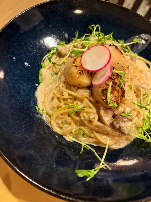 呢次同朋友慶生,特登揀咗荃灣 Vision 8(兆和街34號永安樓地舖)~一入去就好鍾意佢個氛圍💫 黃色燈光暖暖地,好chill、好舒服,成個 vibe 超適合同朋友慢慢食慢慢傾!🍝 香煎帶子配牛肝菌意大利麵:帶子煎得啱啱好,外層微焦香、入面仲keep住嫩滑,配上濃郁牛肝菌醬汁,好有層次感。🦪 白酒煮忌廉藍青口配薄多士:呢個真係驚喜位!我個朋友平時唔食青口,但呢度整得好新鮮無腥味,仲帶少少忌廉香同白酒香,佢食到停唔到口~🐖 蘋果木燒西班牙黑毛豬鞍扒:必試!豬鞍超嫩滑,肉汁滿滿,烤得剛剛好,咬落去有淡淡蘋果木香味,真係「第一次食到咁好食嘅豬鞍!」💯🍫 心太軟:最後當然要甜品作結~熱朱古力流心加上雪糕,濃郁得嚟唔膩,好滿足~整體嚟講,無論氣氛定味道都非常出色,價錢以呢個水準都算合理,難怪我哋一晚傾到唔想走~🥂📍荃灣 Vision 8兆和街34號永安樓地舖…查看更多