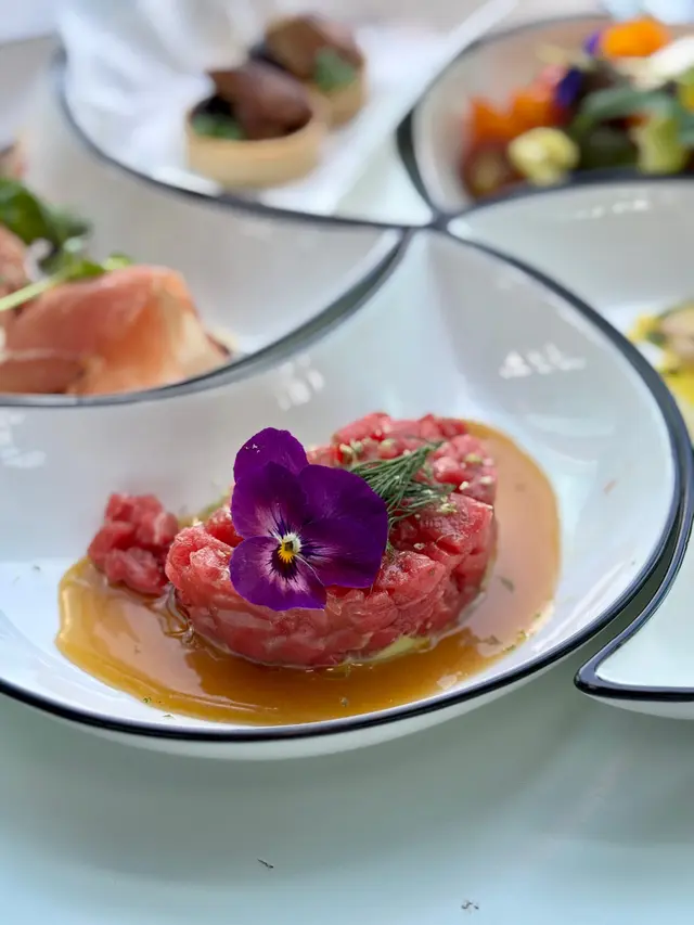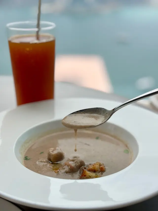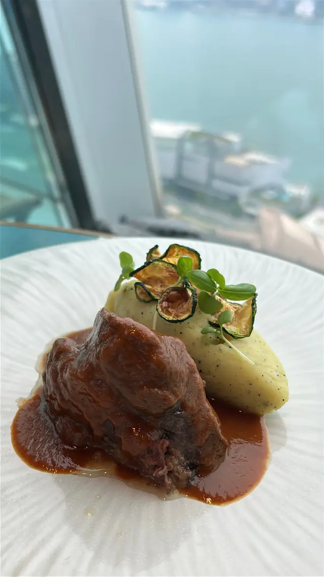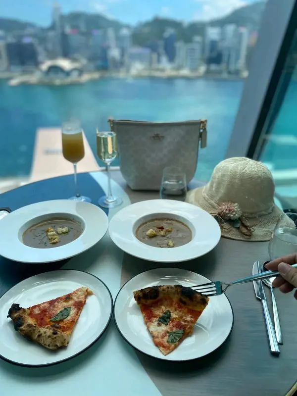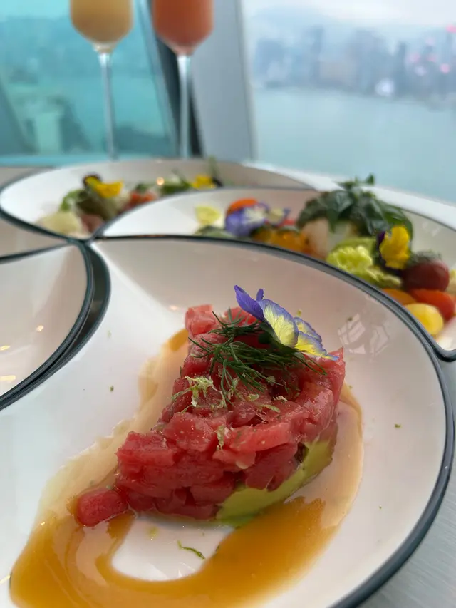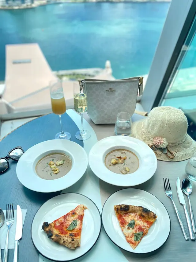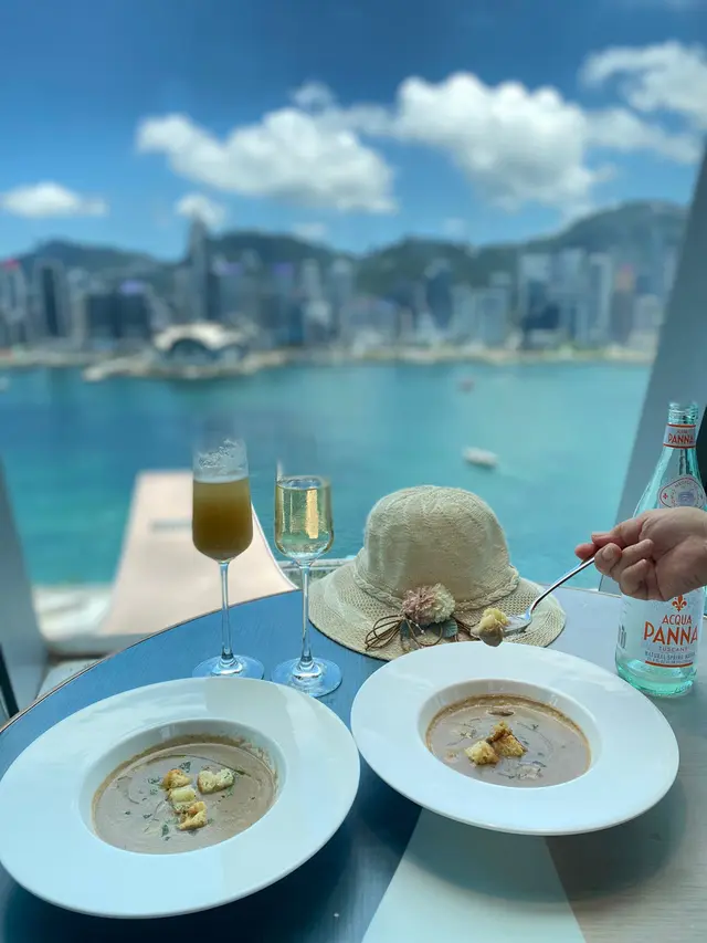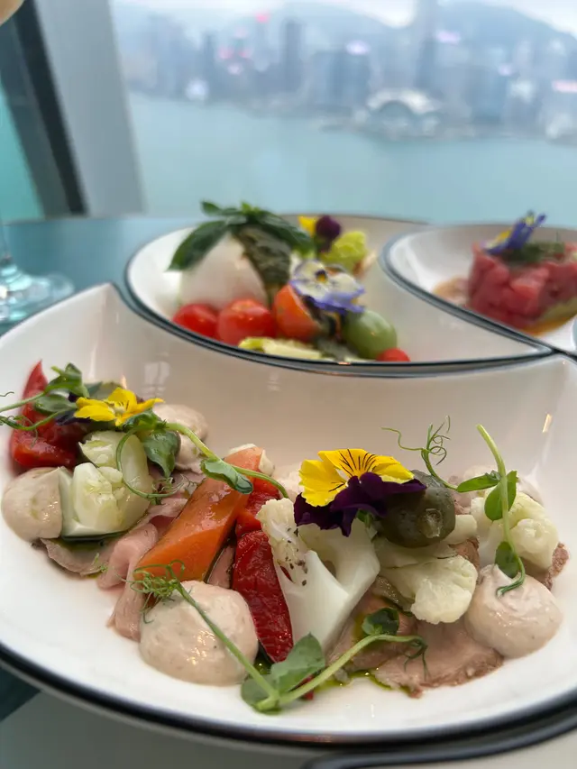 嚟到餐廳真係「嘩」一聲,張張餐枱位置都可以睇到港島區的維港風景,慢慢嘆過週末午餐,正!Vista「週末風車午餐」午餐包括:Margherita Pizza 一片、迷你蘑菇湯(份量都唔迷你)、自選五款開胃菜、主菜及一個甜品。風車午餐的精粹是自選5款開胃菜,選擇了:Burrata 布拉塔芝士沙律、烤八爪魚配鷹嘴豆蓉、迷你鵝肝撻、生帶子薄切、藍鰭吞拿魚配牛油果他他。款款都好食,最鍾意Burrata 布拉塔芝士沙律,份量大,味道都好正宗,有種處於意大利嘅感覺。藍鰭吞拿魚配牛油果他他有啲日本+西式現代fusion,好香滑,如果加多一兩片檸檬在旁,可以自行調配檸檬汁份量,味道會更清新。主菜揀咗:慢煮和牛面頰配松露薯仔蓉及青瓜、西西里海鱸魚柳。慢煮和牛面頰帶點煙靭感,不會很油膩,而且份量也很足夠。松露迷對住松露薯仔蓉咁香松露味,忍唔住不斷食。青瓜🥒原來整咗上面嗰兩塊好似薯片咁脆嘅脆脆片。灑上薄鹽香煎的西西里海鱸魚柳,帶點中式煎魚感覺,配了燴蕃茄雜菜,輕盈不油膩。最後的甜品:經典意大利芝士蛋糕 Classic Tirmaisu,份量都幾大份下。外型都入面的餡餅一點都不馬虎。$488 嘅餐牌食物款式和份量都好豐富。如果加埋海鮮拼盤嘅話,相信要由12點食到3點,唔停咁食足3個鐘😂 價錢同中上環soho 區的西餐廳相約,而呢度仲有海景睇!平時嘅工作壓力、生活壓迫,難得可以慢慢享用美食,欣賞維港風景,放空下,真係好減壓、好寫意。Vista呢間海景餐廳,觀賞維港煙花慶祝活動等風景一絕。臨走前問咗職員,如要預訂觀賞維港煙花慶祝節日的晚餐要幾耐前訂位,職員告知最好於煙花活動前一個月訂位。…查看更多