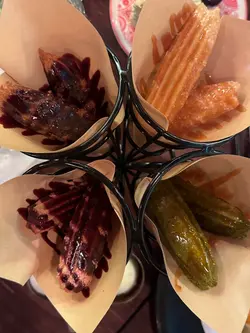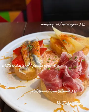 一间位于大坑西班牙菜小店,见到十月中至尾就结业,所以都拿拿林约朋友去试下。😋Spanish Platter 呢个前菜有4款,个人比较中意个manchego cheese 同paleta,食完系几开胃,又唔会太咸。😆跟住就分别叫左两款pintxos, manchego cheese 曼切戈芝士木梨酱多士同white anchovies 醋浸鳀鱼西班牙甜椒多士。第一个就系多士面查咗木梨酱再夹芝士食,食落甜甜地。另一个就不得不赞个鳀鱼蓉整得好好,食落好creamy。🤩🤩Broken egg with Poleta 🐦🐷呢个系炸鸭蛋配黑毛猪火腿,再配埋薯仔一齐食,简单得嚟又美味。😋Spanish Tortilla w/Chorizo 西班牙辣肉肠蛋饼入面有洋葱,烟肉,薯仔,净系呢个都已经食饱咗一半。大件又抵食,味道都ok。 Iberco Pork & 🐷Chicken 🐥Juice Rice Lobster Paella 🦞呢两款都系烩饭,Pork & Chicken 呢款相对Juice d ,lobster paella就干咗啲,如果想食呢个就要提前订。个人就比较钟意lobster paella 呢款,食落好入味,饭嘅口感岩岩好。唔会煮到好硬或太冧。🙈🙈Churros 我地分别叫咗3种味道嘅西班牙油炸鬼,分别有抹茶,红莓同姜黄。红莓糖同姜黄糖配柠檬糖浆味都酸得过瘾。😆😆😆 Peanutssssss Butter I/C sandwich呢个顾名思义就系雪糕三文治,花生味嘅外层焗得好松脆同重花生味,夹埋雪糕食一流。Double lemon soda & Passionfruit Soda/tea 饮品就一般,茶系预先整好嘅,饮落就茶味浓同苦涩咗啲。 另一杯就系Soda水加柠檬,所以无乜特别。好食指数 🌕🌕🌕🌖🌑推荐指数🌕🌕🌕🌘🌑抵食指数🌕🌕🌕🌖🌑…查看更多