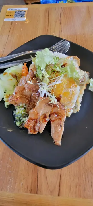 小小店铺,lunch都满人,应该有原因。呢到唔单选择多,有西,台式,而且质素唔错。今次我食左个lunch set.睇左一阵menu,念左一轮 几样嘢想食,最后选择呢个,黑椒鸡扒汉堡,配咖哩角,五十零蚊。佢个鸡扒不得了,煎完都仲好juicy, 一路食一路流汁。个咖哩角好有惊喜,个皮薄而脆身,个咖哩薯仔好香唔太辣,有少少咁多薯仔碎而唔系蓉,总之觉得好好味。仲有妙少沙律菜中和返个餐。特饮加$14,虽然有人会觉得朱古力唔算特饮,但对我而言,我知佢个朱古力会拉花,就系唔简单,用14蚊买个拉花比自己赏心悦目下,食个lunch都可以打下卡,不错。一个吸睛而好味嘅餐为一日