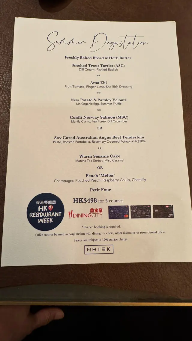 WHISK (尖沙咀) 网址: https://s.openrice.com/QrLS0DfC000 地址: 香港尖沙咀彌敦道118-130號美麗華廣場The Mira Hong Kong 5樓 电话: +852 23155999