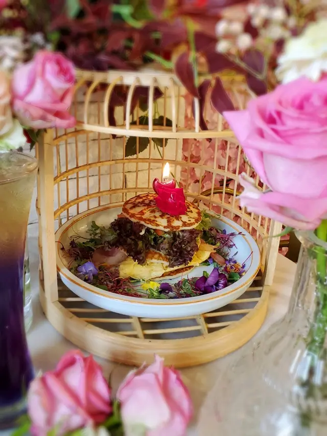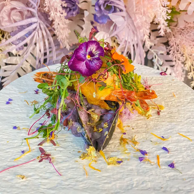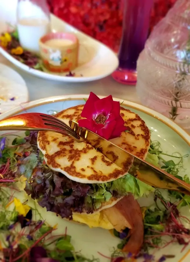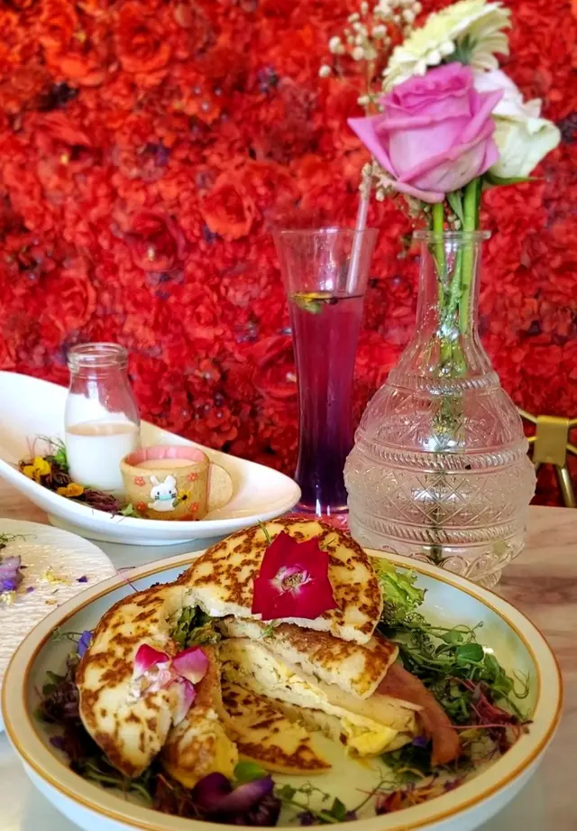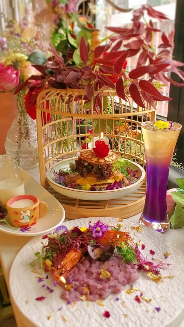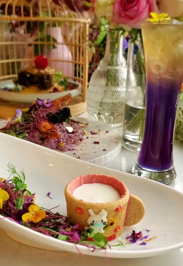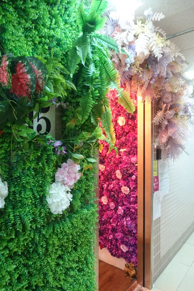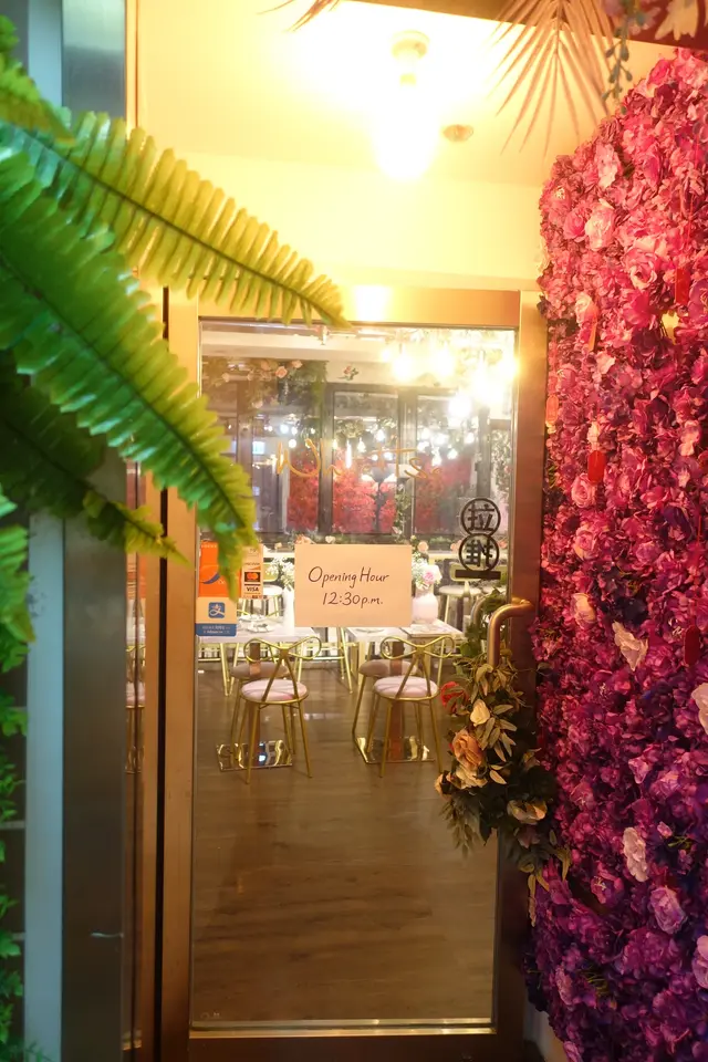 我們食到最後一枱走,才影到無人之境的花花餐廳背景!