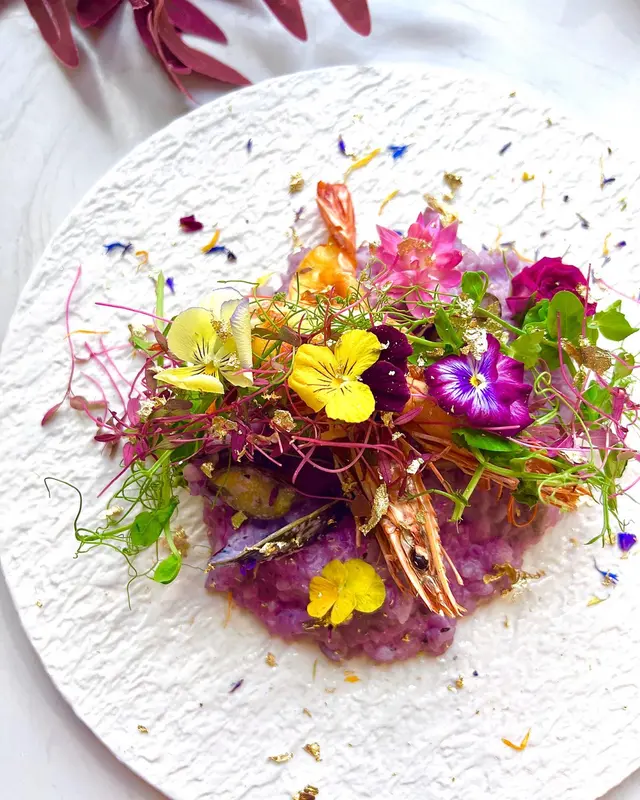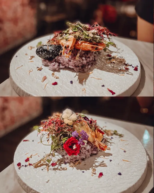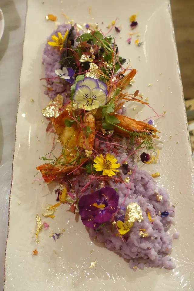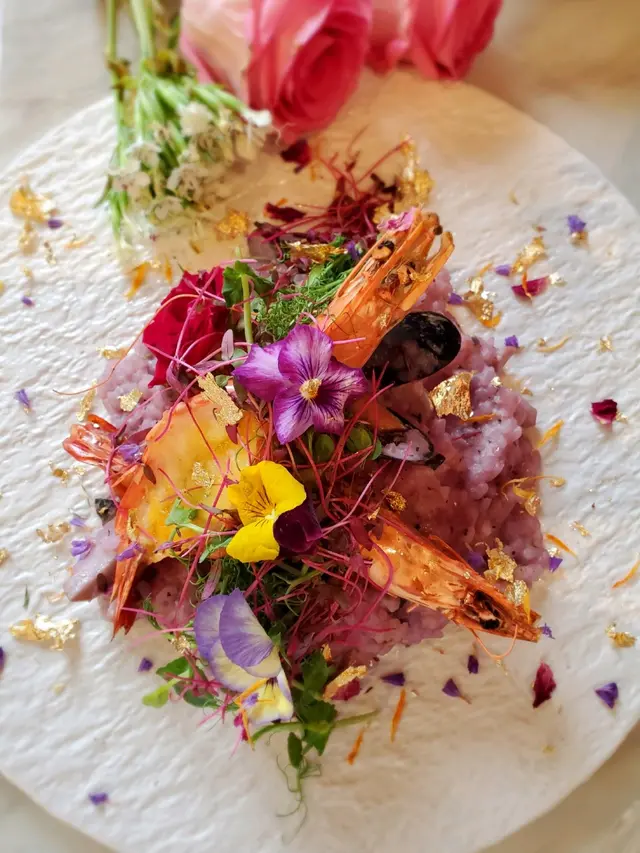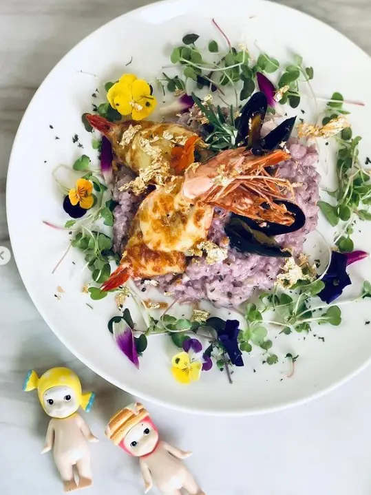 以新鮮紫椰菜打碎與幼滑忌廉煮成的 risotto ,令每粒意大利飯也沾上粉紫色的忌廉汁;口味清新又夠味!