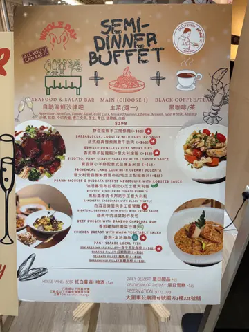 朋友好钟意食半自助餐,比起自助餐抵食之余又可以食到好饱,朋友住呢度附近,话同我试下呢间餐厅,我见地点喺围方非常方便,地铁站一出就到,又见好吸引,所以就一齐食。 入座后,职员好细心比个篮我地摆袋,基本上拣左主菜,就开始出去自助吧拎野食了。 自助海鲜沙律吧呢度沙律吧都几多选择,净系沙律方面选择都已经有好多款,而且好多款酱汁,好有诚意。冷切肉盘,有两款火腿,两款都好香好好味。 海鲜方面,青口好新鲜,又大只。翡翠螺好鲜甜,又弹牙。白虾好爽口又大只,有鲜味,最欣赏餐厅已经煎了头尾尖位和须位,方便客人进食。酱汁选择都多,有柠檬,泰式等等。而且海鲜不停refill,唔惊冇得食。 烟三文鱼烟薰味好香,非常适合搭配沙律。 我同朋友嘅主菜系share黎食。经典牛肉汉堡配竹炭包汉堡个卖相好靓,汉堡肉质好juicy,大大块又有牛味,竹炭包口感松软,芝士好浓郁,仲有蕃茄同生菜都好新鲜。 意大利云吞酿鲜虾蓉布拉塔芝士配龙虾汁有五粒云吞,大大粒,而且鲜虾蓉好好味,云吞皮烟烟韧韧,龙虾汁又浓郁又香。 本身有杂菜汤,另外亦有餐饮,非常丰富。 呢度都几抵食,主菜好食之余,沙律吧又多选择,仲有海鲜,样样都好新鲜。…查看更多