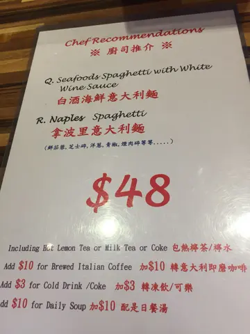 又一次因为报导及食评中伏,睇报导时,影餐厅环境只影局部,影到好有气氛,但系亲身去到完全系两回事!装修简单,位也不多... 但既然黎到,算啦,照试下啦,有咁好既报导同食评,环境唔掂但食物可能ok呢...唉,我真系未试过比一碟食物一粒星,呢碟意大利饭,绝对系唔识煮西餐既人煮既,我煮得都好过佢!饭还饭,芝士酱还芝士酱!完全系似一啲白饭捞淡味芝士酱!点煮架!意大利饭要用上汤煮熟唔系用水煮,个厨有冇常识架!啲带子反而几新鲜,煎得几香Parma Ham沙律, Parma Ham少到无轮都算了,沙律完全无味,失败!羊架系11成熟,over cooked仲好大阵稣味!羊架8成熟已经可以了,over cook只会靭,个厨又一次无sense! 全餐4个菜,最好食系个炸鸡翼... 鸡翼大大只,外皮炸得好香脆,极邪恶但真心好食Ok. 中伏既野一次就够... 做西餐但连煮西餐既基本都唔识,我同朋友都好怀疑点解仲有人帮衬...3个人食,叫咗4个菜、3杯饮品,一人$204…查看更多