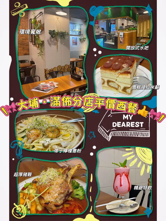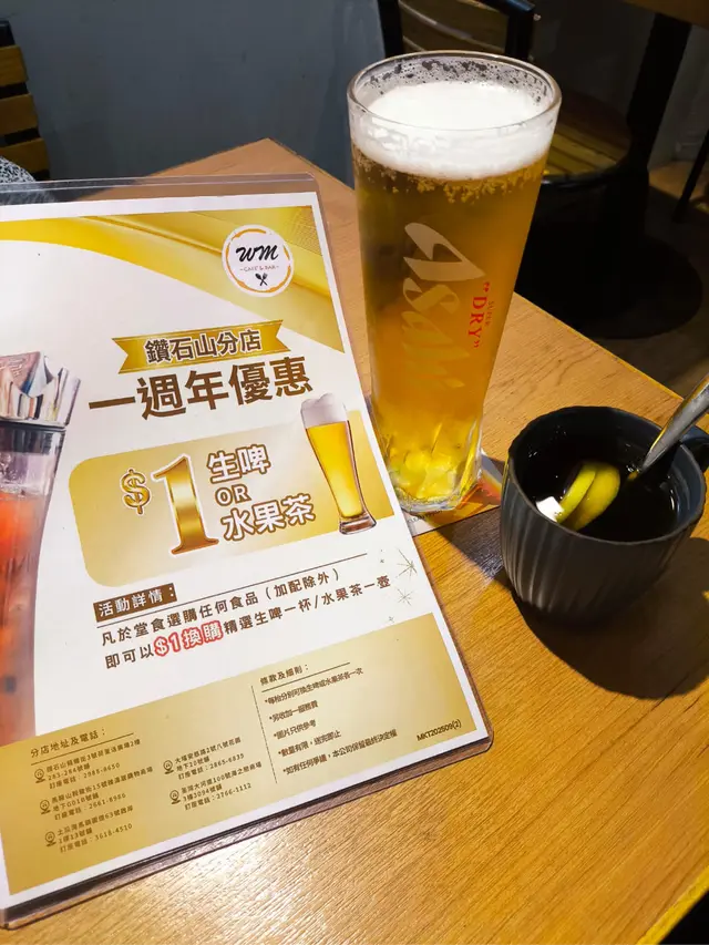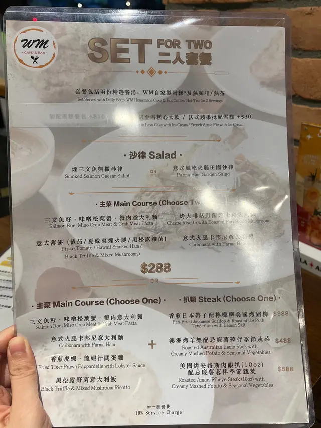 🎀大埔。滿佈分店平價西餐👍🎀🪄店名* WMCafeBar🔮地址* 香港大埔安慈路2號八號花園地下20號舖 🔮🗾分店地區🗾 荃灣, 大埔, 鑽石山, 馬鞍山, 紅磡, 沙田💰價錢$469 已加一 (2人)➖➖➖➖➖➖➖➖➖➖➖➖➖🎵餐廳環境🎵WM Cafe & Bar 延續其多分店(全港6間)。門面以紅磚砌成,裝修別具特色。室內空間寬敞,燈光明亮,搭配綠植點綴增添生氣。裝潢走簡約工業風,木紋檯凳配襯室內紅磚牆與白瓷磚牆,加上開放式水吧設計,整體感覺舒適開揚,氛圍輕鬆。🍽️食物質素🍽️餐廳主打高性價比,提供多類型西式餐飲。$468 套餐非常抵食,包含湯、前菜、主菜、甜品及飲品,一次過滿足。其甜品尤其吸引,選擇多樣,除經典巴斯克蛋糕外,更有造型可愛的熊貓蛋糕,極具打卡價值。飲品同樣精緻,視覺與味覺兼備,是聚餐的好選擇。👀評分💖💖💖💖🪄柚子海鹽烤西班牙伊比利豬鞍 $208擺盤有心思,似西餐廳水準。豬鞍厚身,烤得香口,帶點柚子香氣。墊底的薯蓉口感滑順帶少許粒粒感,配搭酸甜醬汁和雜菇,整體味道不錯。以價錢來講份量足,如肉質軟嫩些更加分。👀評分💖💖💖💖💖🪄香煎帶子檸檬意大利粉 $138最大亮點是幾粒巨型帶子,煎得幾香。意粉口味清爽,檸檬味突出,酸酸甜甜幾開胃,適合喜歡清淡的人。👀評分💖💖💖💖💖🪄提拉米蘇 $38有啲特別,最底層係雪糕,食落幾冰涼。咖啡味偏淡,整體甜度適中,口感層次有變化。同傳統提拉米蘇唔同,可以當係一款新甜品試下。👀評分💖💖💖💖💖🪄雪沙草莓 $42賣相好靚,打卡一流!草莓冰沙打得幼細,甜度調得剛好,唔會太膩,有天然果酸味。係杯幾清新嘅飲品。(5個💖為最高)✴️✴️✴️✴️✴️✴️✴️✴️✴️✴️✴️✴️✴️⚜️整體評級⚜️🎈味道評分*😋😋😋😋🎈環境質素*🎇🎇🎇🎇🎇🎈抵食程度*💰💰💰💰💰🎈服務態度*💌💌💌💌💌…查看更多