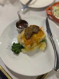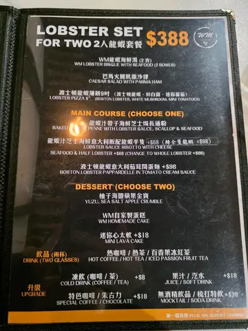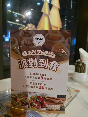 今晚同朋友去咗启岸WM Cafe食饭,餐厅环境不错,灯光温馨,仲有圣诞装饰,氛围好,情侣或一大班人聚餐都岩。餐厅晚市套餐超抵食, 餐汤,沙律,主菜,餐饮加埋小食都只系$200内 。 仲要超高质,真心唔错👍餐汤系龙虾汤😲😍,汤身浓稠,忌廉香同龙虾鲜味好夹,暖暖地饮落去好舒服。跟住系巴马火腿沙律同奇异果蕃茄沙律,巴马火腿咸香有嚼劲,配埋新鲜蔬菜,好开胃;奇异果蕃茄沙律色彩缤纷,奇异果嘅酸甜同蕃茄嘅鲜甜融合,清新又解腻。主菜方面,威灵顿牛柳配香煎鹅肝好有惊喜。威灵顿牛柳外层酥皮松脆,入面牛柳火候啱啱好,粉嫩多汁;香煎鹅肝肥美细腻,油脂香满溢,同牛柳一齐食,口感同味道层次好丰富。香煎带子明太子蟹肉意大利粉都好正,带子煎得外香内嫩,明太子蟹肉酱好浓郁,上面仲加入左三文鱼籽真系材料好丰富。拌匀意大利粉,每啖都好滋味。追加嘅芝士焗西兰花,西兰花保持住爽脆,铺面芝士焗到金黄,拉丝效果一流,芝士香好浓。甜品自家制巴斯克蛋糕,质地绵密,芝士味浓郁得嚟又唔会过腻,好正。饮品热柚子蜜同热柠檬蜜都几清新,解腻又暖胃。另外,餐厅仲有到会供应~圣诞节期间定满指定金额仲有赠品送😍😍平时订满指定金额仲有折。禁抵食,圣诞聚餐嘅朋友可以考虑下。…查看更多