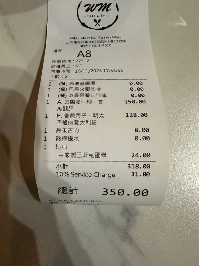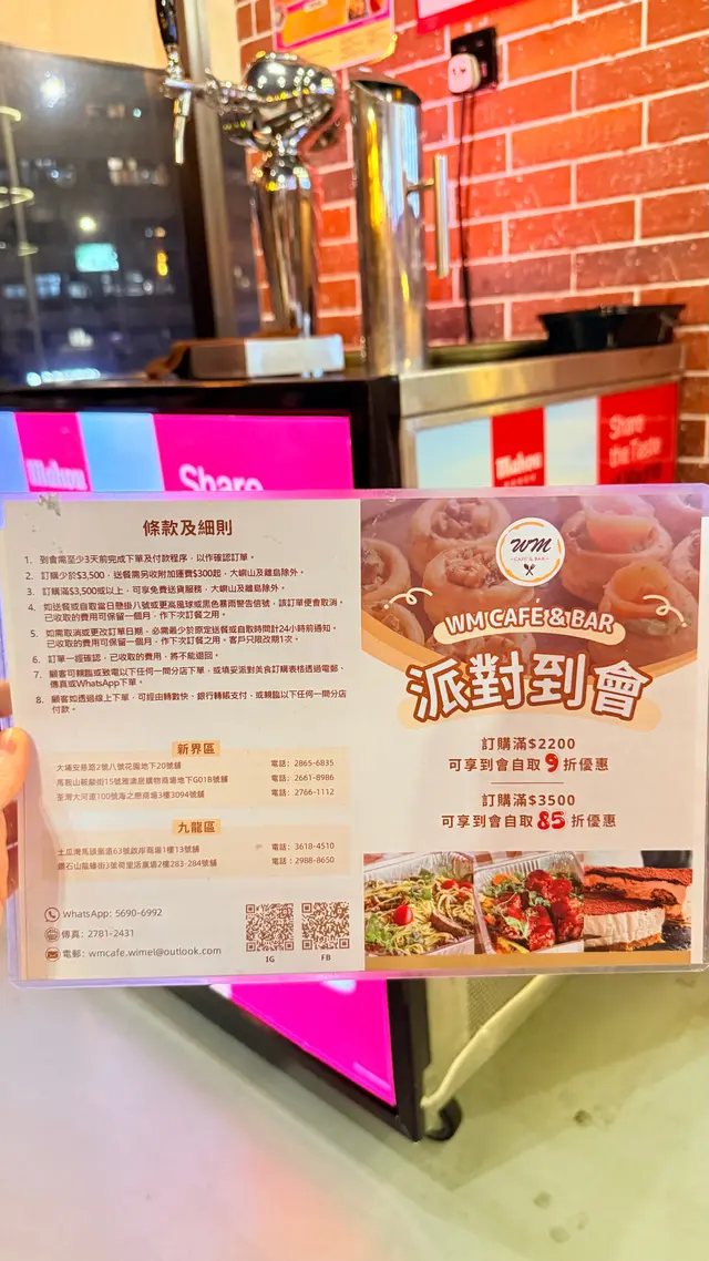 WM Café & Bar (啟岸) (红磡) 网址: https://s.openrice.com/QrLS0tN8B00 地址: 香港紅磡馬頭圍道63號啟岸1樓13號舖 电话: +852 36184510