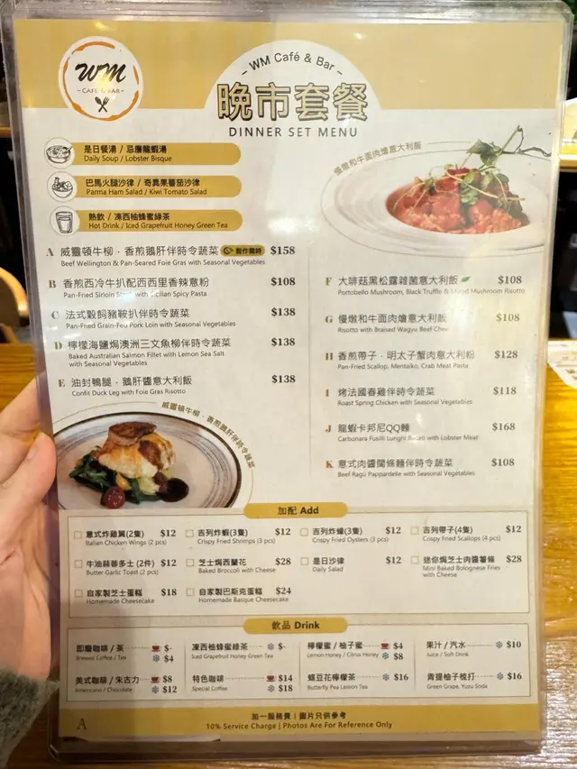 WM Café & Bar (海之戀商場) (荃湾) 网上订位即赚Rice Dollars 网址: https://s.openrice.com/QrLS0sKeA00 地址: 香港荃灣大河道100號海之戀商場3樓3094號舖 电话: +852 27661112