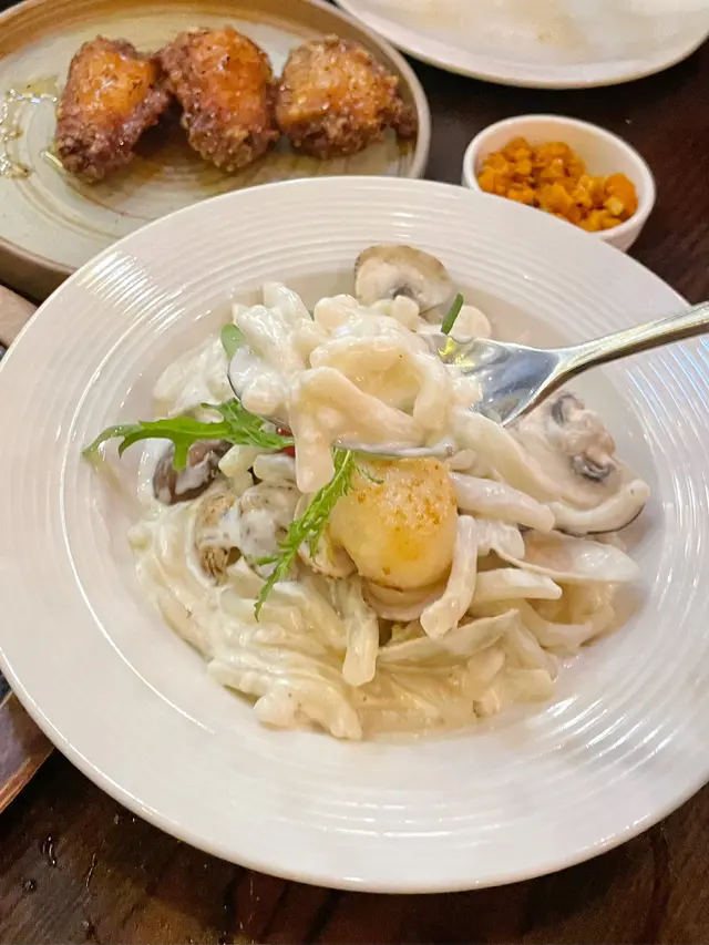 開頭都唔知WOFT係咩意思,後尾先發現原來解Waste Of FxxxingTime😂 因為店主希望大家都唔洗OT,放工可以同班豬朋狗友一齊開懷暢飲,感覺幾得意😆 裝修以啡色為主,用左好多唔同既燈同燈泡💡感覺幾chill(5 😍 係滿分,🤩係半分)BBQ濃醬海鮮Pizza 8” 🍤🦑🍕 - $118 (好味指數:😍😍😍🤩)跟住叫左個海鮮pizza🍕,主要用左爽口既蝦仁🍤同彈牙既魷魚粒🦑,如果料可以鮮甜啲同多啲就更加好~ 上面仲加左啲香口既火箭菜🚀🥬、有鹹香既芝士🧀同酸酸甜甜既BBQ汁,如果醬汁可以多啲味道更加突出~ 另外pizza底🍕係薄底,有淡淡既麵粉香🌾,係稍微乾同硬左少少白汁蘑菇海鮮狗仔粉配香煎帶子 🍄🟫🍝⚪️ - $138 (好味指數:😍😍😍😍)個帶子⚪️煎到金黃色,係半生熟既質地,口感軟嫩~ 亦落左啲鮮味既蜆仔🦪、彈牙既魷魚粒🦑同清新既蘑菇🍄🟫去煮,個汁唔會水汪汪,質感幾杰身同creamy,奶味🥛幾香濃,配埋啲幾索汁又煙煙韌韌既狗仔粉都唔錯,係食到後面就漏左啲~ 旁邊仲配左啲辣菜脯 🌶️🥬,香辣爽脆都幾得意脆炸千絲蝦配番茄汁 🍤🥫 - $68 (好味指數:😍😍😍😍)炸左之後係金黃色幾靚🤩 薯仔🥔刨成幼絲之後再卷埋啲蝦🦐,薯絲🥔脆卜卜咁,焦香酥脆,有幾香口既薯仔味🥔,裡面既蝦肉🦐肉質彈牙,配埋酸酸甜甜既茄汁🥫會開胃啲,而且又突顯到薯仔🥔既香味燒帆立貝串 🔥⚪️ - $48 (好味指數:😍😍😍😍)有兩隻肥美飽滿既帆立貝⚪️,質地厚實,口感爽口彈牙,味道幾鮮甜,撒埋惹味調味粉,鹹鹹辣辣🌶️都唔錯~燒惹味鴨舌 (2串) 🔥🦆👅 - $38 (好味指數:😍😍😍🤩)個鴨舌🦆👅應該有醃過先燒,食到有滷水既香味同甜味,通常滷水用左多種香料煮,例如八角、桂皮、丁香同香葉🌱,所以會香口啲~ 啲鴨舌🦆👅幾入味,出面微脆,入面質感滑溜,配埋調味粉辣辣地🌶️幾惹味,係略嫌骨🦴多左啲同硬左啲~ 好味指數:😍😍😍🤩推介指數:😍😍😍🤩…查看更多