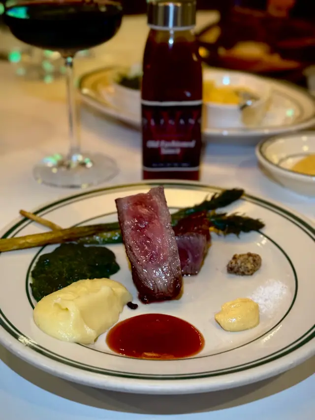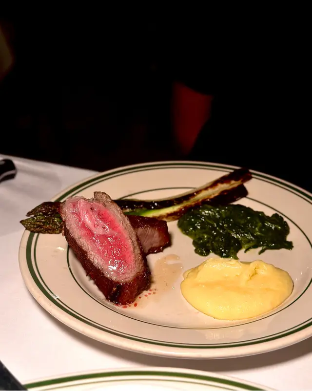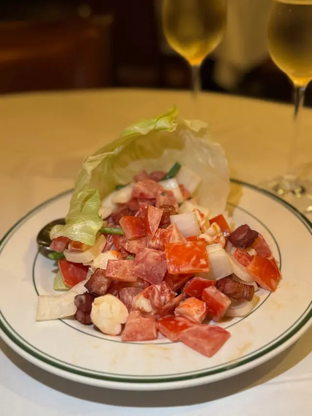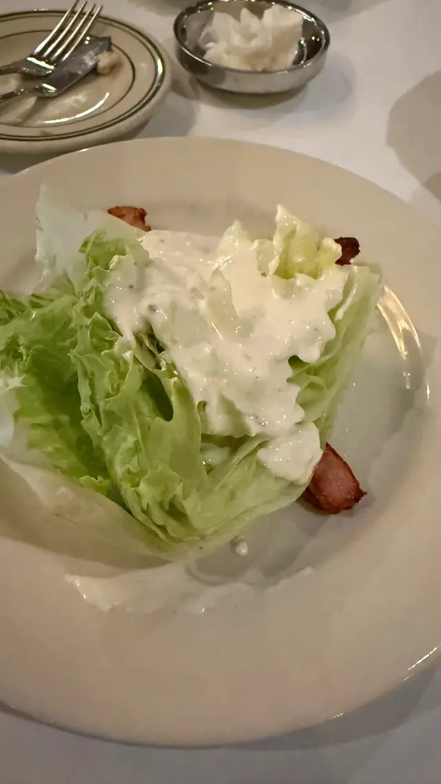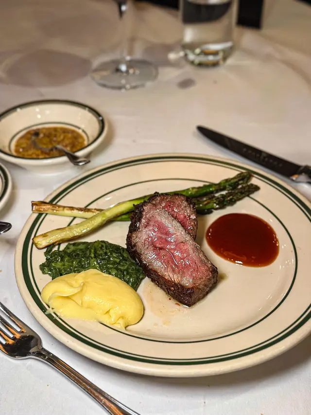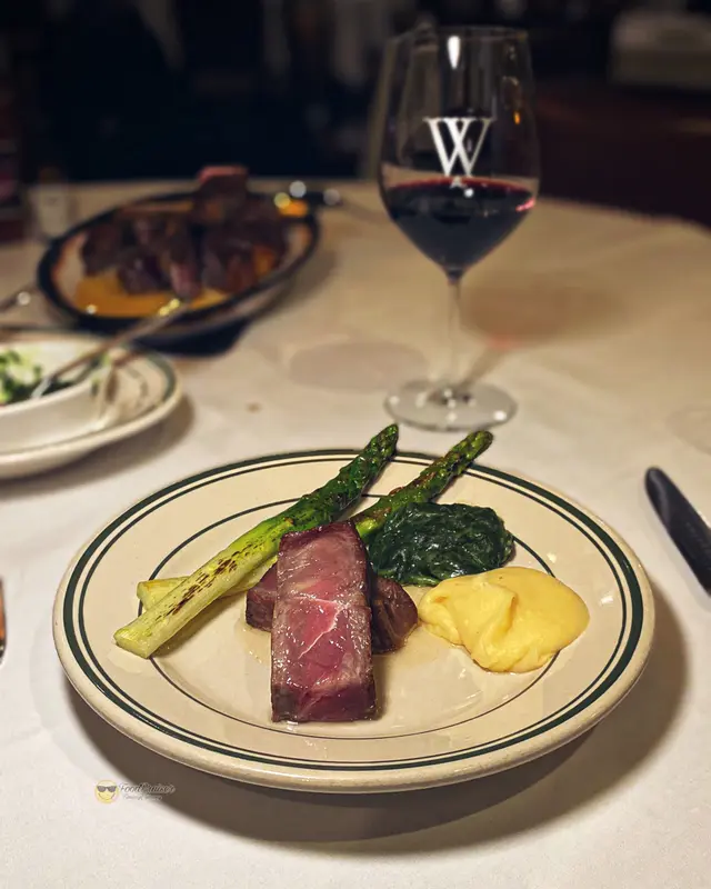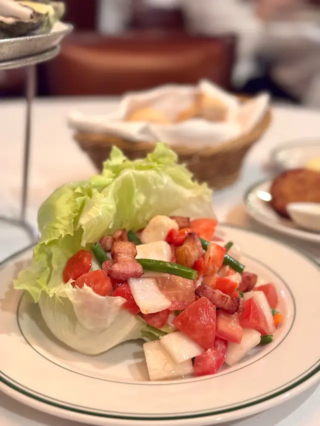位於中環的西式扒房餐廳。本人比較老土,始終覺得慶生要拎過刀叉鋸下扒,才有慶祝的氛圍;這間傳統的美式扒房,裝潢典雅且具有空間感,帶有古典懷舊感卻不失格調。而且慶祝的時候還會贈送即影即有的留念照片,真的很適合約會或特別慶祝呢。.這間餐廳亦大有來頭,作為紐約牛扒的代表之一,採用美國認證最高規格的黑安格斯牛肉,經由空運直送到港,並在餐廳內專屬的恆溫熟成室進行28天的乾式熟成,從而提升牛肉的嫩度與風味。對牛肉愛好者來說,絕對值得一試!另外,當日餐廳非常繁忙,全場滿座,上菜速度略為慢一些;但負責接待我們的Hinson態度熱誠又親切,真的值得一讚。⋆_____ Classic Course $880/pp______⋆✿ Bread: Bakehouse's bread.✿ Appetizer: ⧐ Wolfgang's salad不喜歡吃沙律的我,也被這道色彩繽紛的沙律吸引。除了爽脆的生菜外,還有鮮甜的蕃茄、脆卜卜的煙肉粒及爽嫩的蝦肉,層次豐富,既清新又開胃。⧐ Wolfgang's crab cake招牌的手打蟹餅,份量厚實又大塊,煎至表面金黃香脆。入口後蟹肉鮮嫩多汁,每一口都能吃到濃郁的蟹肉甜味。⧐ Fresh oyster +$280選用法國Fine de Claire No. 2蠔,外殼偏淺,肉質爽嫩肥美,口感細膩多汁。搭配紅酒醋後,更能突顯蠔的鮮甜層次,入口帶有微微的榛果香氣與自然的甜味,展現海洋的純粹與新鮮。.✿ Soup:⧐ Lobster bisque +$50⧐ mushroom soup是日餐湯為磨菇湯,入口帶有蘑菇的鮮美及濃郁的菌香,質感綿滑香濃;而Lobster bisque的味道濃稠鮮甜,龍蝦的香氣突出,口感如奶油般絲滑,奢華又豐富。 .✿ Main: porterhouse steak +$280/pp⧐ Sides: Mashed potatoes / creamed spinach / grilled asparagusPorterhouse牛排由Tenderloin與Sirloi各佔一半,兩部分的肉質都粉嫩細緻,入口即化。餐廳特別採用高溫快火煎烤,然後將牛排放在已預熱的瓷碟上;當牛排送上桌時,油脂在熱度的作用下「卜滋卜滋」地爆裂,聲音誘人,何謂先聲奪人應該就是指這種時候了!聽從職員的建議點了三成熟,果然放在這瓷碟上牛排的熟度便變得恰到好處!牛扒的外層煎得金黃酥香,散發出誘人的焦香氣息。入口時,牛油的香氣突出,肉質嫩滑多汁,肉味濃郁,果然是優質的黑安格斯牛肉呢,絕對值得品嚐。配菜方面,除了有奶香濃郁的忌廉菠菜及綿密可口的薯蓉,更有翠綠的燒蘆筍,烤得恰到好處,保持了嫩脆多汁的口感,為整體餐點增添一抹清新感。..✿ Dessert: Tiramisu甜品時間自然就是拍照留念的時間,即影即有的照片,物輕情意重,很值得留念;而這份Tiramisu濕潤香甜,咖啡與酒的層次豐富,整體不會過甜,i like it!.✿ Drinks: coffee or tea..✿ Wine:⧐ Wente Morning Fog Chardonnay 2023⧐ Wente Southern Hills Cabernet Sauvignon食蠔鋸扒又豈能不搭配紅酒和白酒呢? 全城熱話的7萬元一枝酒我就當然點不起了,幸好餐廳提供的酒款也不少。白酒帶有清新果香與微妙的橡木味,口感爽口;而紅酒則以濃郁的果香與豐厚的單寧,與牛排的油脂相得益彰,層次感豐富。…查看更多