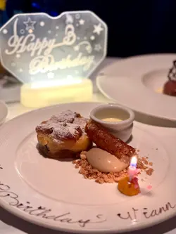 如果要我推荐尖沙咀庆生餐厅,Wooloomooloo Prime绝对是Top pick!最近推出的庆祝套餐,人均$6xx就能面对整个维港用餐!还有专属生日菜单&生日灯牌,配上落地玻璃窗外的海景,马上值回票价!🍽 前菜3选1,和朋友都选了烟肉包北海道带子,烟肉裹著肥嫩带子,外脆内鲜!芥末薄荷豆泥很解腻🥩 香煎牛柳 - 五分熟牛柳搭配千层薯绝配~🦞海陆双拼(牛柳+龙虾尾) - 龙虾已贴心去壳,虾肉Q弹饱满!宾尼士酱搭牛柳浓郁不抢戏🧁甜品两样都有选,个人更推荐面包布丁配咖啡吉士酱,现烤布丁有浓郁的肉桂味,搭配咖啡吉士酱超邪恶却满足💫 庆祝体验加分项• 窗边位直击维港夜景,还能看烟花• 服务生会主动帮忙拍即影即有留念• 露天酒吧适合饭后小酌,看夜景视野更开阔