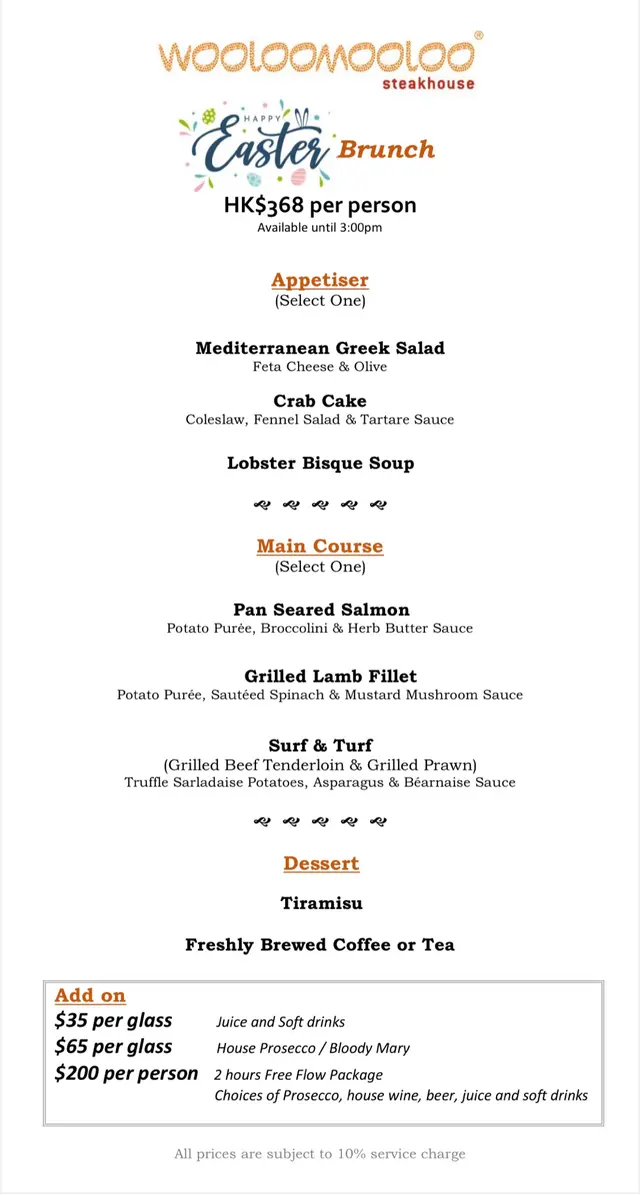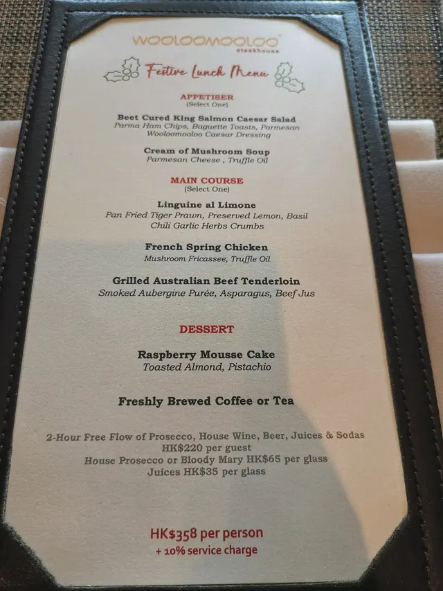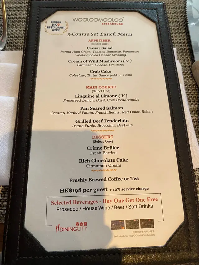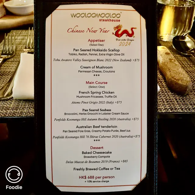 Wooloomooloo Steakhouse (尖沙咀) 网上订位享特别优惠并赚Rice Dollars 网址: https://s.openrice.com/QrLS0H6W000 地址: 香港尖沙咀麼地道66號尖沙咀中心UG17-18及G7-8號舖 电话: +852 27227050