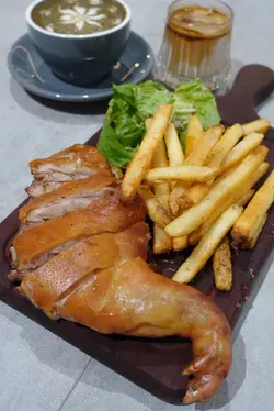 近月密集黎番细个会黎嘅土瓜湾, 努力重新探索;印象中嘅旧区 活化得好有惊喜…睇画展嘅机缘 发现呢间好坐好食嘅西餐~玫瑰洛神花黑糖茶 $88/ 900mL花茶浓郁舒心, 套杯好可爱啊!香草白酒煮大蚬 $68蚬肉大粒鲜甜, 赞啊 原来佢同烟肉系咁夹啊~巴黎炖牛脸肉 配普罗旺斯炖菜 $118牛脸肉炖得软林, 调味开胃 食得满足啊!西班牙烤脆皮乳猪 $238/ 350g上枱热辣辣, 香喷喷; 火喉控制得好, 皮薄超脆, 微油香 唔肥腻, 欣赏啊!慢煮肉酱意粉 $88微酸开胃 又够浓郁, 令人不知不觉清咗碟~法式煎慢煮鸭胸配马沙拉橙汁 $138鸭胸味浓 厚肉软嫩, 肉肉爱好开心心~后: 焙茶鲜奶 $36前: 脏脏咖啡Dirty 转燕麦奶 $40杜拜开心果仁朱古力心太软 配雪糕 $88足料有诚意, 杜拜开心果脆同开心果仁 配住黎食, 雪糕同流心蛋糕 口感味道 大大升华啊