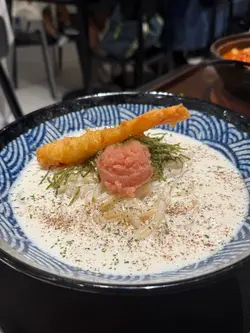 之前系YouTube见到卫诗雅介绍呢间Wowdon 已经觉得好吸引😍 终于有机会嚟试🤍 为咗食到佢哋每日限定嘅冰镇自家制阔条乌冬 未开门就已经系餐厅门口等!|冰镇自家制阔条乌冬配吉列猪扒第一次食阔条乌冬 真系好有惊喜‼️呢款手工乌冬采用咗高级小麦粉 手揉熟成18个钟 每日朝早现场制作 所以食落质地厚实弹牙 而且冰镇后更加爽滑 入口清凉 特别啱夏天食🤤 呢款乌冬亦都提供咗三款酱汁配搭 俾大家可以按照自己口味选择~ 鲣鱼昆布酱油走清爽路线 咸香平衡 突显乌冬本身嘅质感🙂↕️ 自家胡麻酱 味道比较浓郁 芝麻味圆润细腻 挂系乌冬上滑顺又唔会太腻🤭 最后秘制咖哩酱就比较重口味 甜甜地唔会辣 特别适合同炸物一齐食🍛|竹轮天妇罗高汤热荞麦面汤底用咗昆布同柴鱼熬制而成 味道清而不淡🤓 荞麦面煮得啱啱好 保留少少咬口 唔会太腍🫣 竹轮天妇罗都好有惊喜 咬落香脆但唔腻 亦带出鱼浆嘅香气 仲要超大条😳|天妇罗炸虾咖哩乌冬咖哩汁浓郁 带甜味但唔会辣 如果觉得太稠 可以加入高汤🫖 呢款正常嘅乌冬同样滑而弹牙 每一条都挂到咖哩嘅酱汁!天妇罗炸虾相对地冇乜惊喜 同一般嘅炸虾差唔多🍤|炸王饺子饺子新鲜炸起 外层食落非常酥脆 每一只都好大 而且入面啲馅都好满‼️ 有菜有肉仲有粉丝 满足感好高🙂↕️ 不过建议3-4个人share食~…查看更多