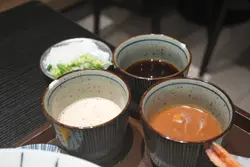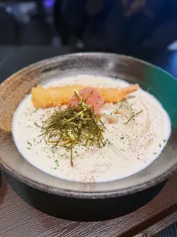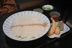 日式炸鸡浇汁冷乌冬 ($118) ★★★✰✰逾百元的乌冬有三件炸鸡,炸鸡不过不失。值得一提是当汤汁倒进碗中,拌匀后天妇罗脆脆已经完全变淋溶掉,令乌冬汤都变得混浊,卖相有点难看。整体而言,这间乌冬价钱定位进取(可能也因为位于商场),质素不见得有一些宣传帖子所说如此惊艳。而且当日随着入座人数越来越多,上菜时间便越来越长,第一个餐和最后一个餐的上餐时间相差15分钟,如果每人一个餐的话在等与不等之间便有点尴尬。…查看更多